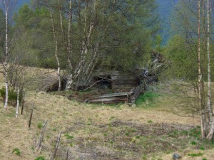 Nedrast uthus fra Storeggens opprinnelige sætervang. Huset er det samme som ses nederst i venstre bildekant på det gamle bildet over. Sætervangen er skilt ut og eies av andre nå. Trist å se forfallet…