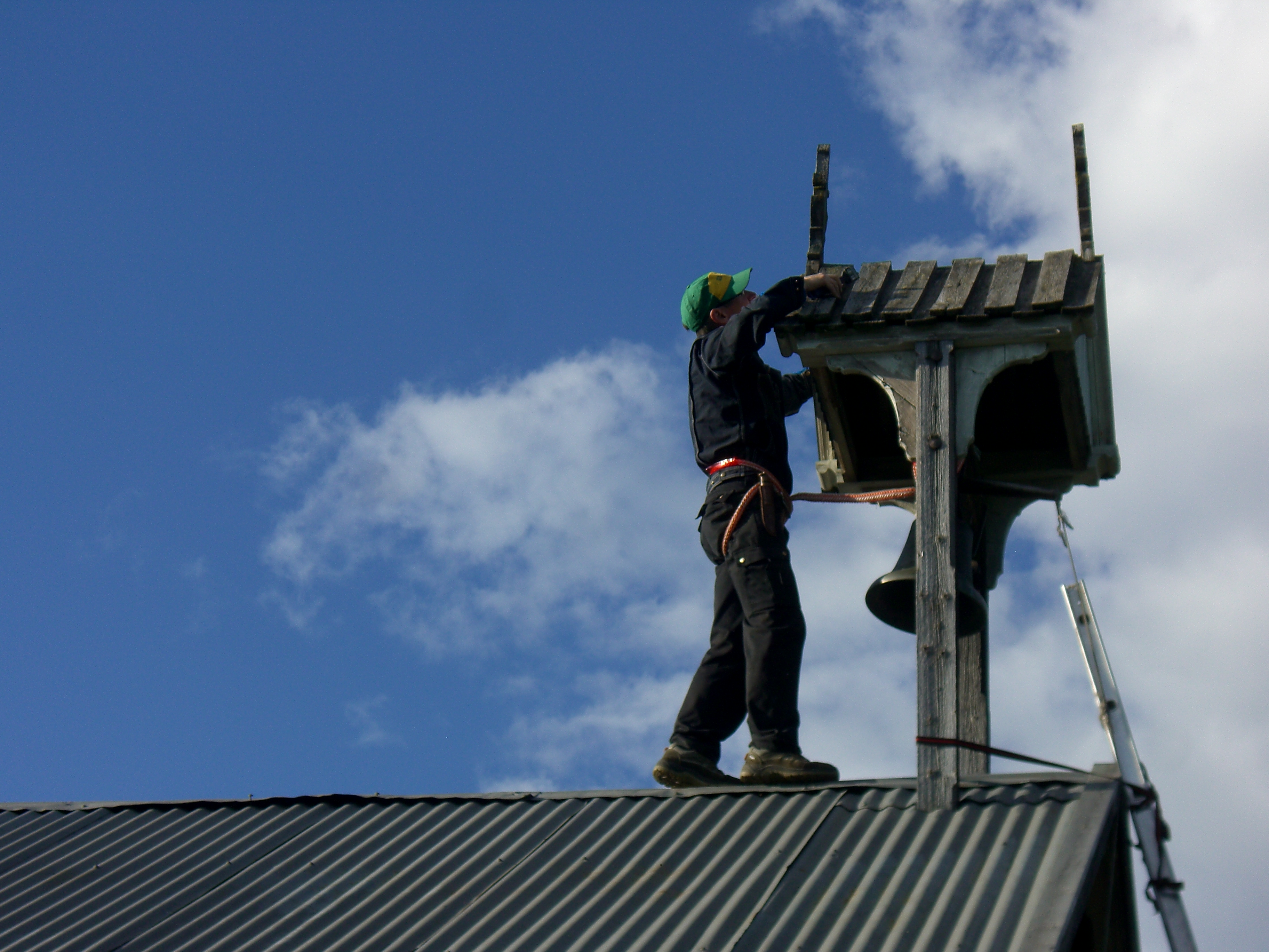 Balansekunst på stabburstaket.