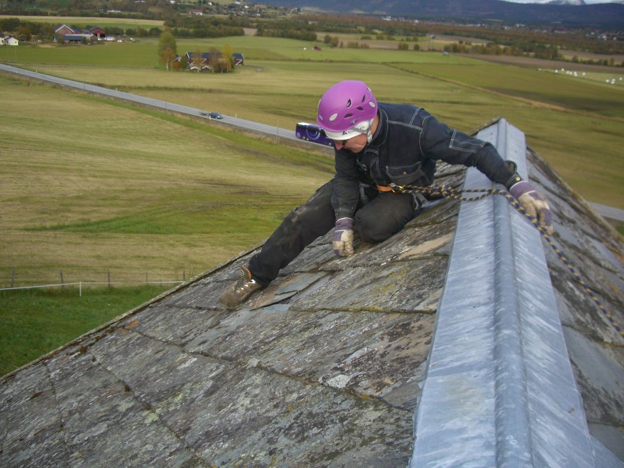 – og glir litt ned på andre siden for å rekke til stedet som skal repareres