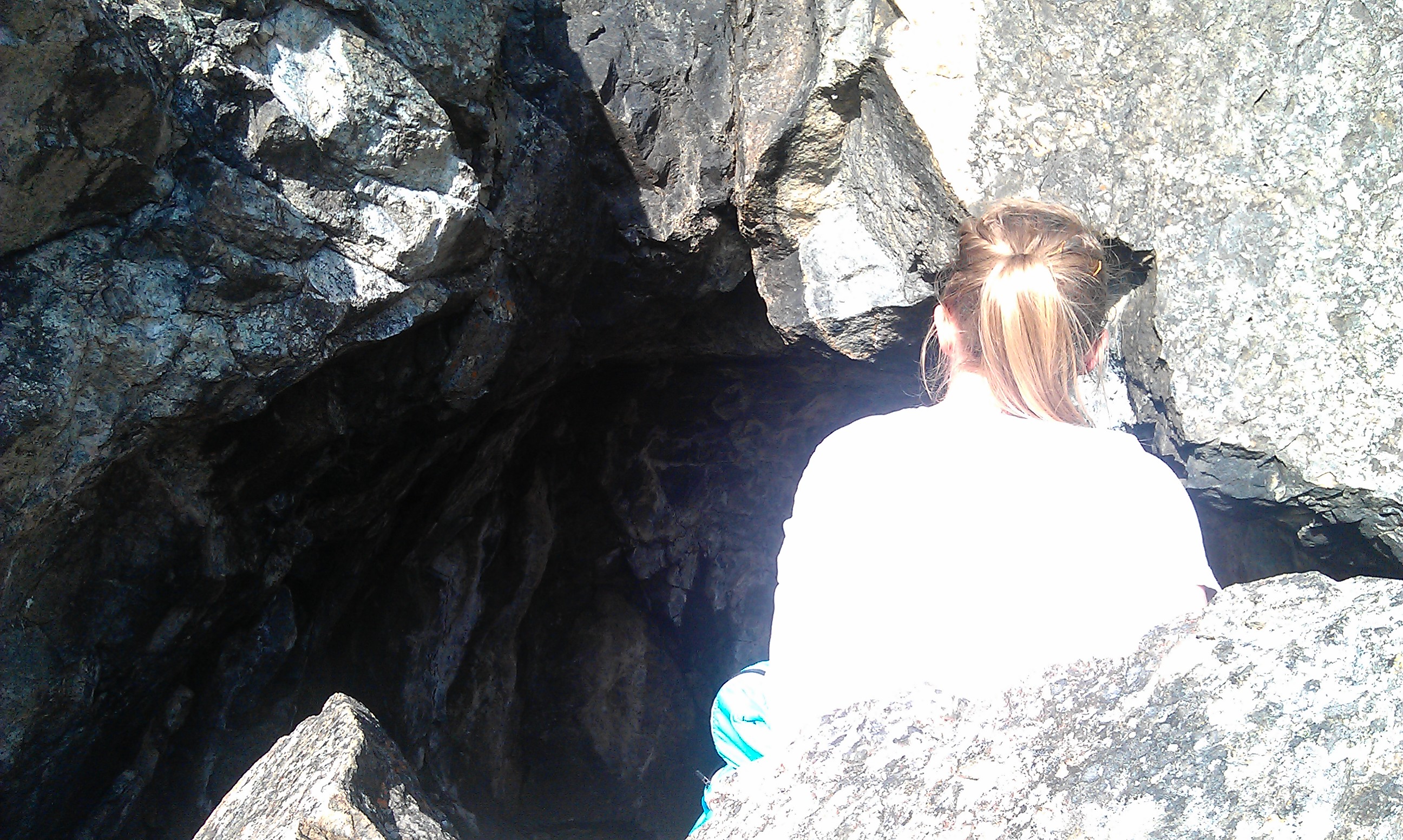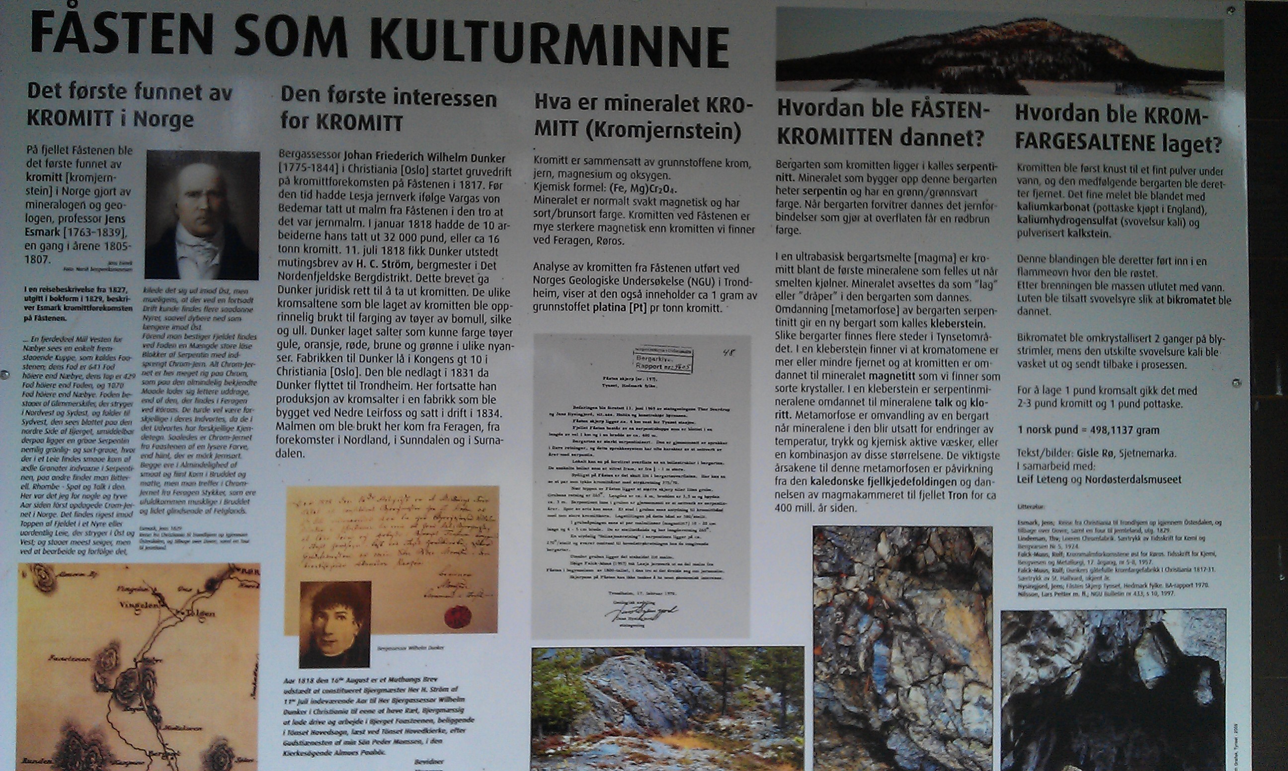 Like under toppen på vestsida, finner vi et lite gruvehol. Bergarten er mørk, med et sterkt innslag av et mørkeblått eller svart mineral. Det svarte mineralet er kromitt, et svakt magnetisk mineral som brukes til forkromming, laging av fargestoffer mm. På grunn av at det er magnetisk, kan man oppleve at kompassnåla oppfører seg noe merkelig når en befinner seg på Fåsten. Mot slutten av siste krig, var det ofte tyske soldater oppe på Fåsten, og det ble etter krigen funnet kamuflasjerende tak utover gruvehola. Antakelig drev soldatene med peiling av norske illegale radiosendinger der.