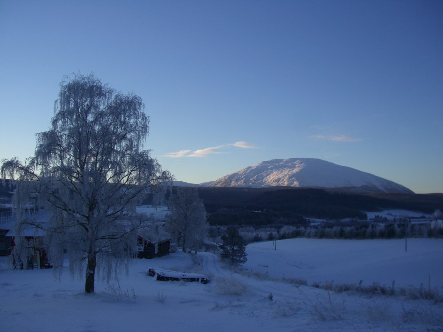 Sol på Tronfjell før den har stått opp her nede i bygda