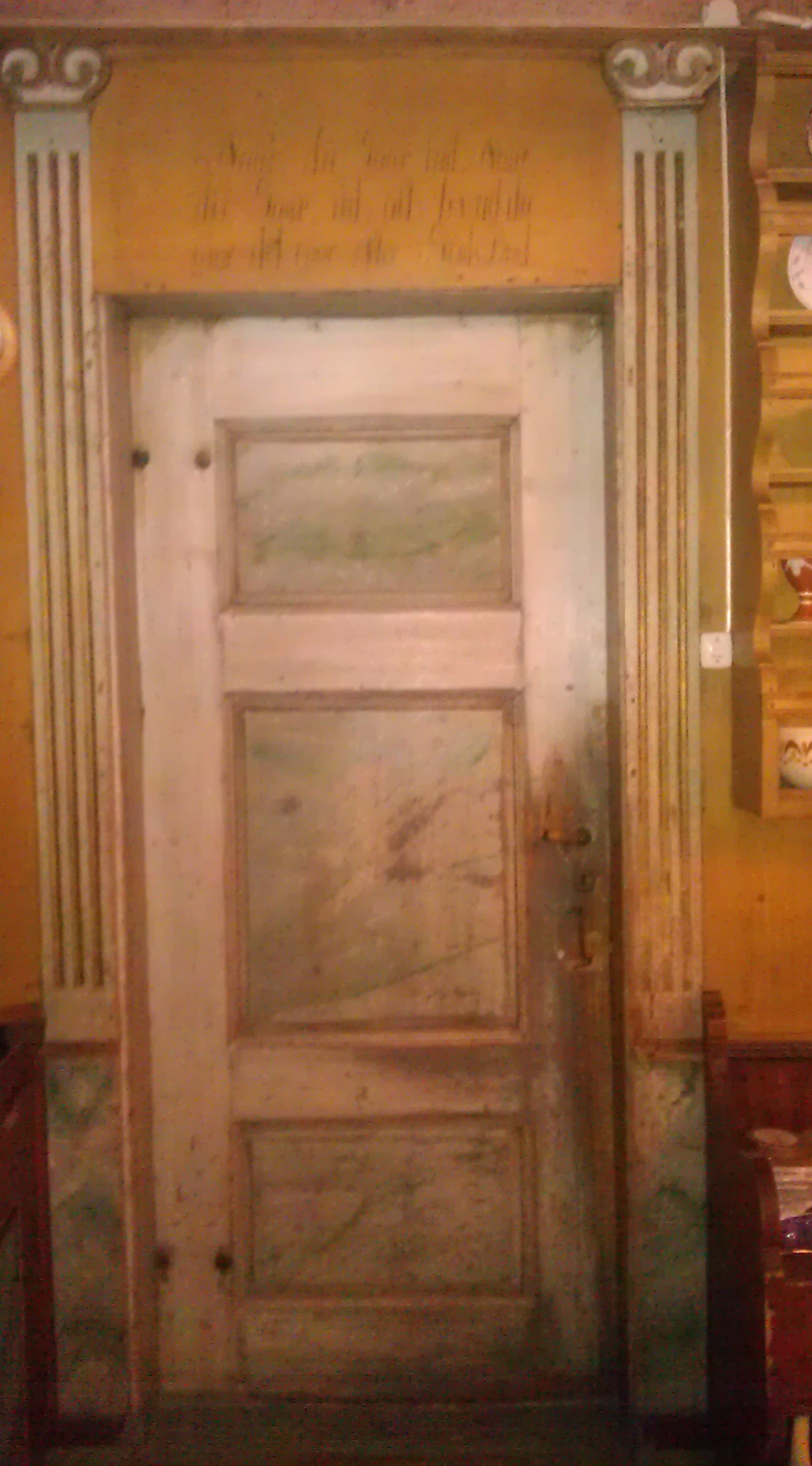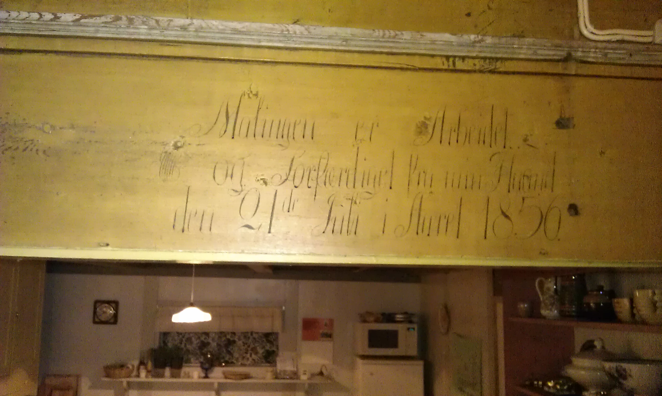 Østerdalsstua er dekorert med maling. Den gule fargen på veggen illuderer kinesisk silketapet, den sorte lista som utgjør toppen av brystpanelet etterlikner ibenholt og nederst er det «mahogni». Panelet er laget av bakhon, med den glatte siden inn, limt tett sammen, slik at det ikke er mulig å se skjøter. Over vinduene er det malt bibelsitater, eller liknende. Maleren har ikke skrevet navnet sitt, så vi vet ikke helt sikkert hvem han var. Det kan ha vært sønn eller sønnesønn av den kjente maleren Sønvis Olsen Holemoen. Både sønnen, Ole Sønvisen Holemoen, født 1809, og sønnesønnen ble også dyktige malere. Sønvis Olsen d.y. ble født i 1834. Malingen i østerdalsstua vår ble utført i 1856.