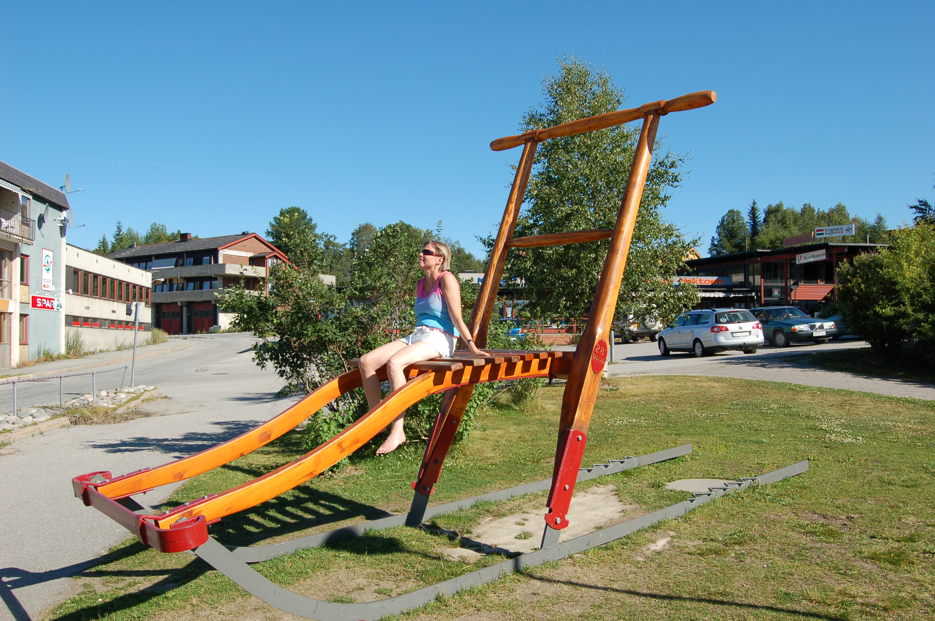 Først var det denne sparken som i flere år sto på Rådhusplassen på Tynset, og ble reklamert med som verdens største spark – helt til noen fant ut at den ikke var størst likevel (det sto en enda større i Tyskland (!)