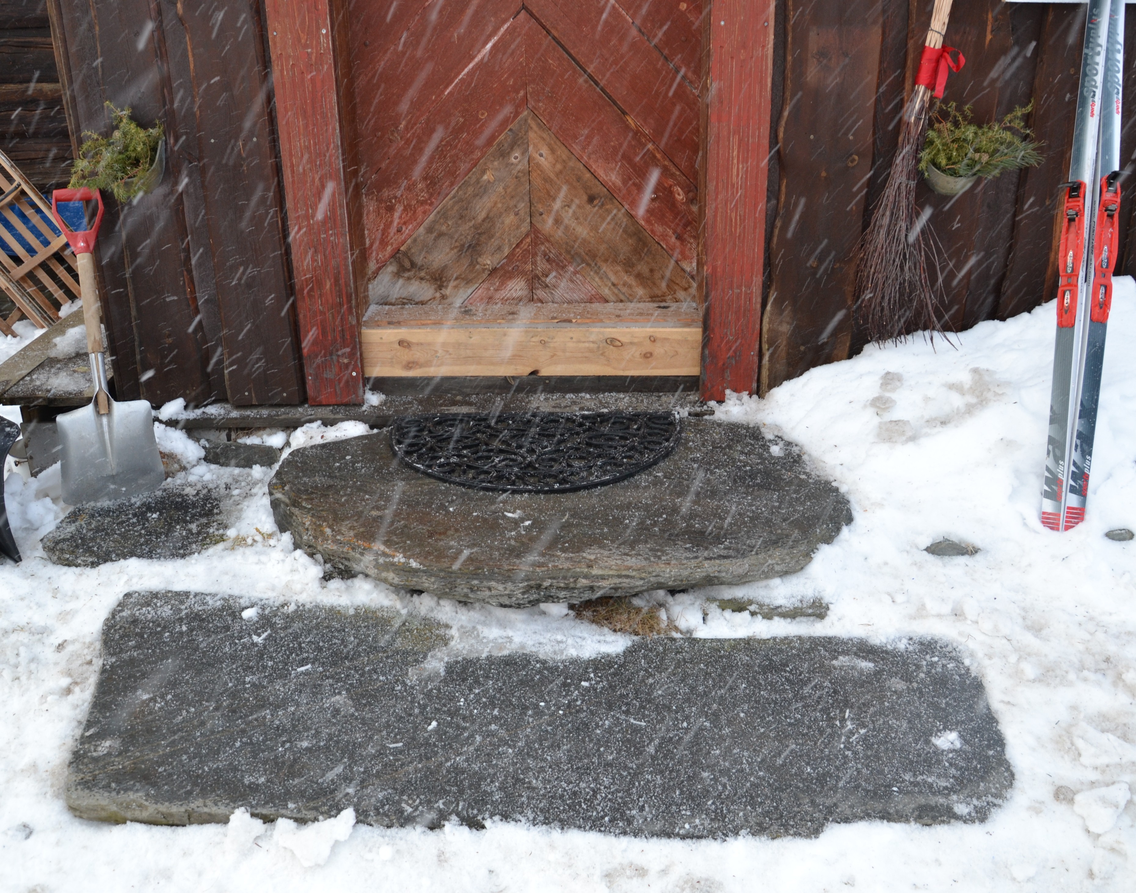 Røde celsiusgrader i dag! Jeg kjenner at våren nærmer seg – fantastisk deilig, selv om snøbyger fortsatt minner om at vinteren skal holde fast en stund til. Trappa, som har vært dekket av et tjukt lag med hardtrampet snø, dukket plutselig frem en liten stund, før en snøbyge igjen farget den hvit.