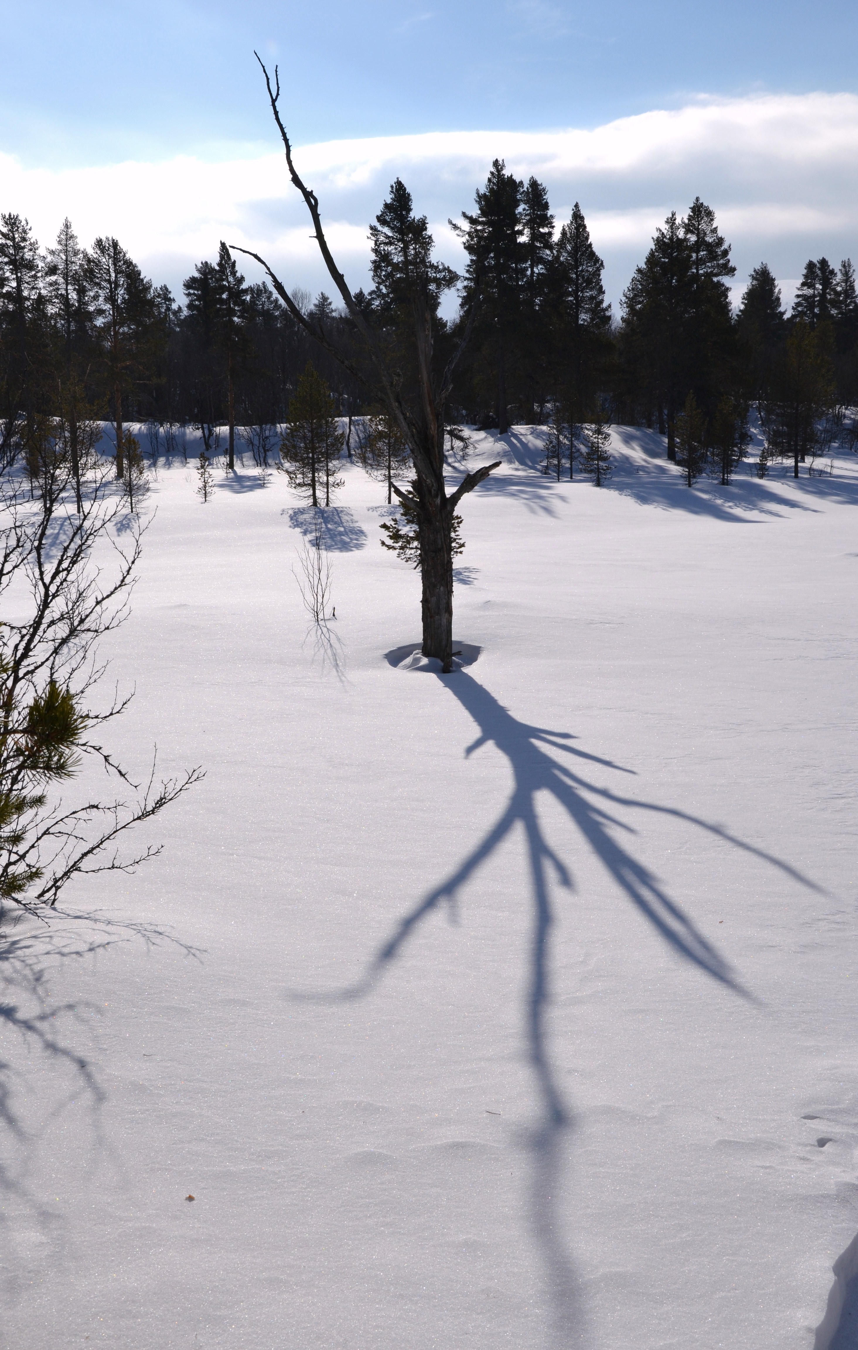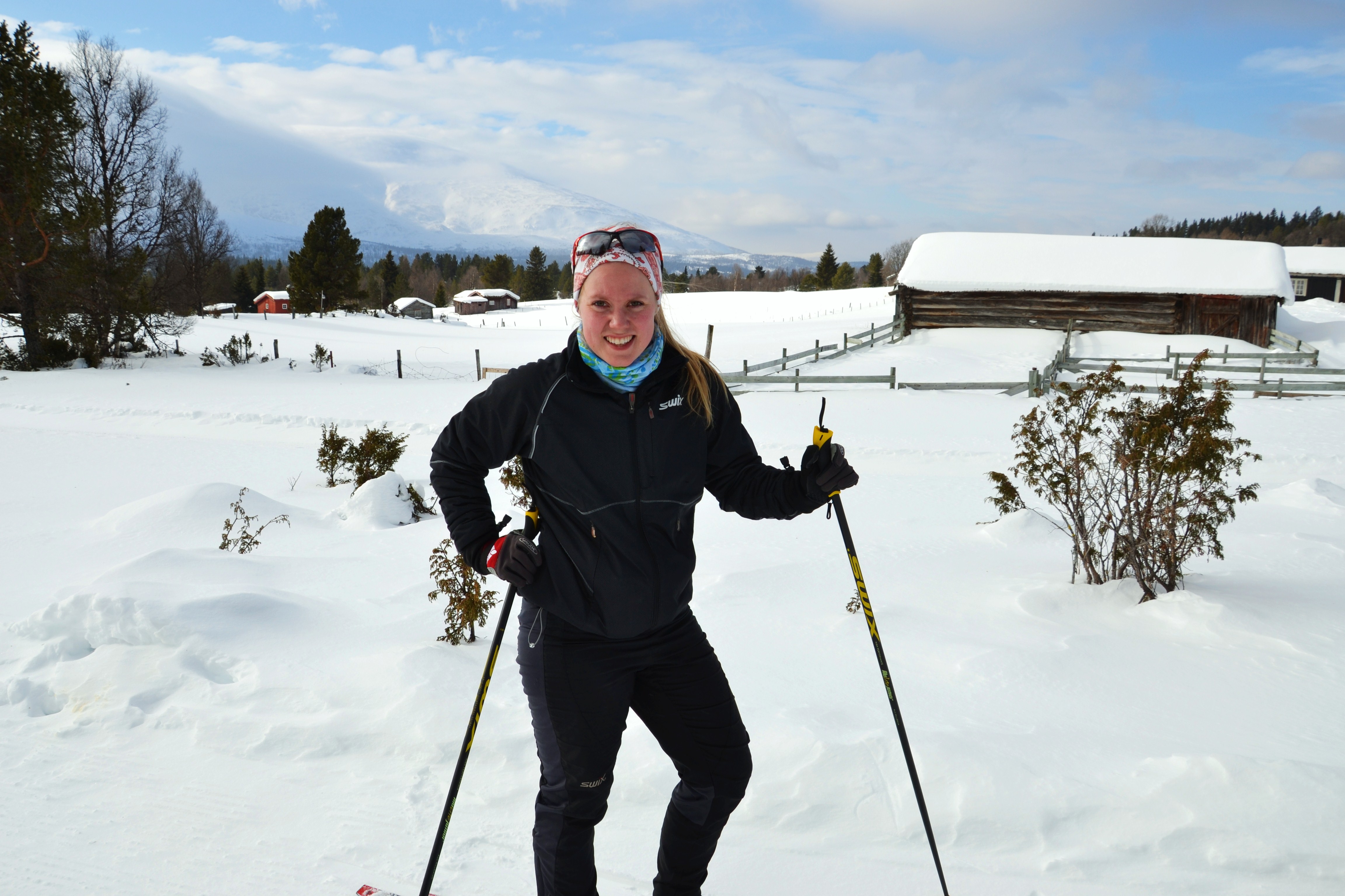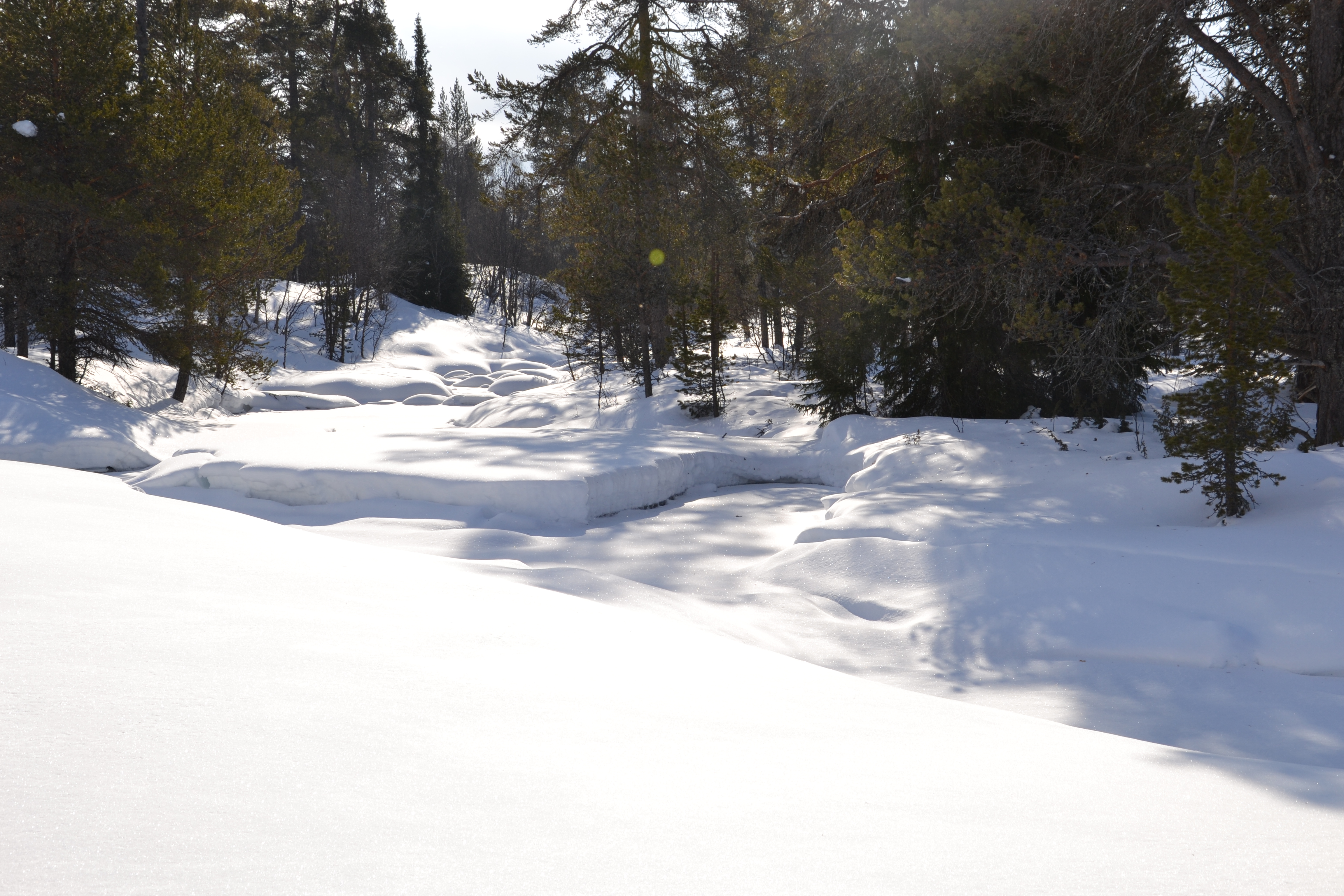 På turen vår passerer vi den vesle elva Auma som fortsatt er snø- og islagt, men når sola nå får litt mer tak vil vannet snart klukke og sildre her