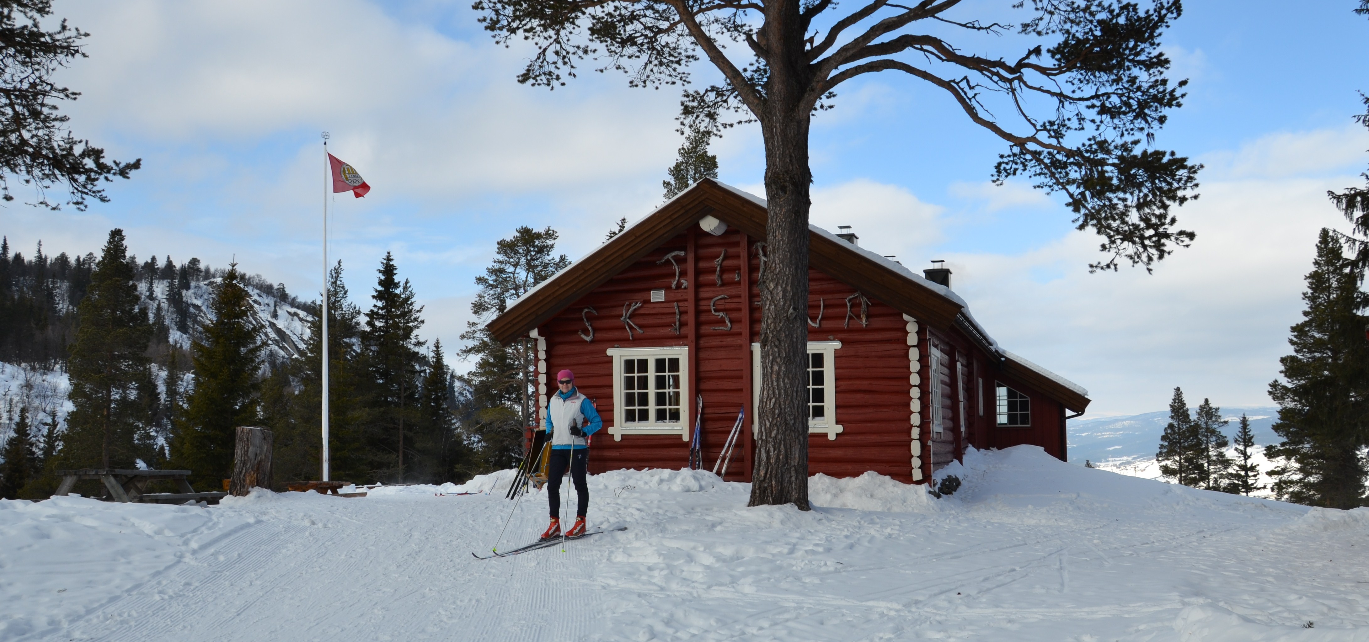– og så tar vi turen til skihytta! Der får vi kjøpt oss noe godt å drikke og deilig hjemmebakst eller vafler. På siste tur dit hadde jeg glemt å ta med penger. Intet poblem, der kunne man krite, evt. låne penger av de som var vertskap den dagen. Dermed ble det både kaffe og vafler på oss. Det gjorde godt i kroppen etter en noe kald tur i blåsten.