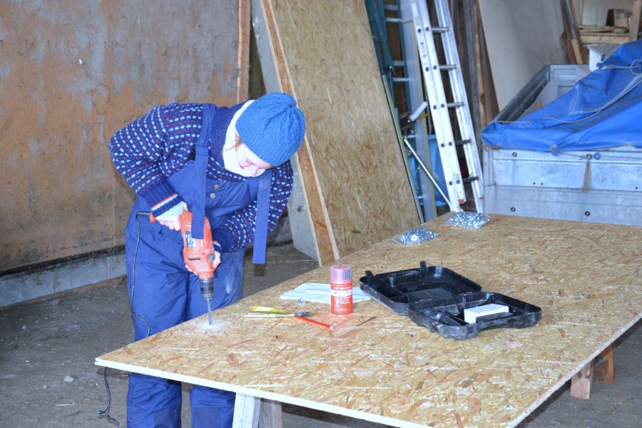 Så starter hun å borre hull