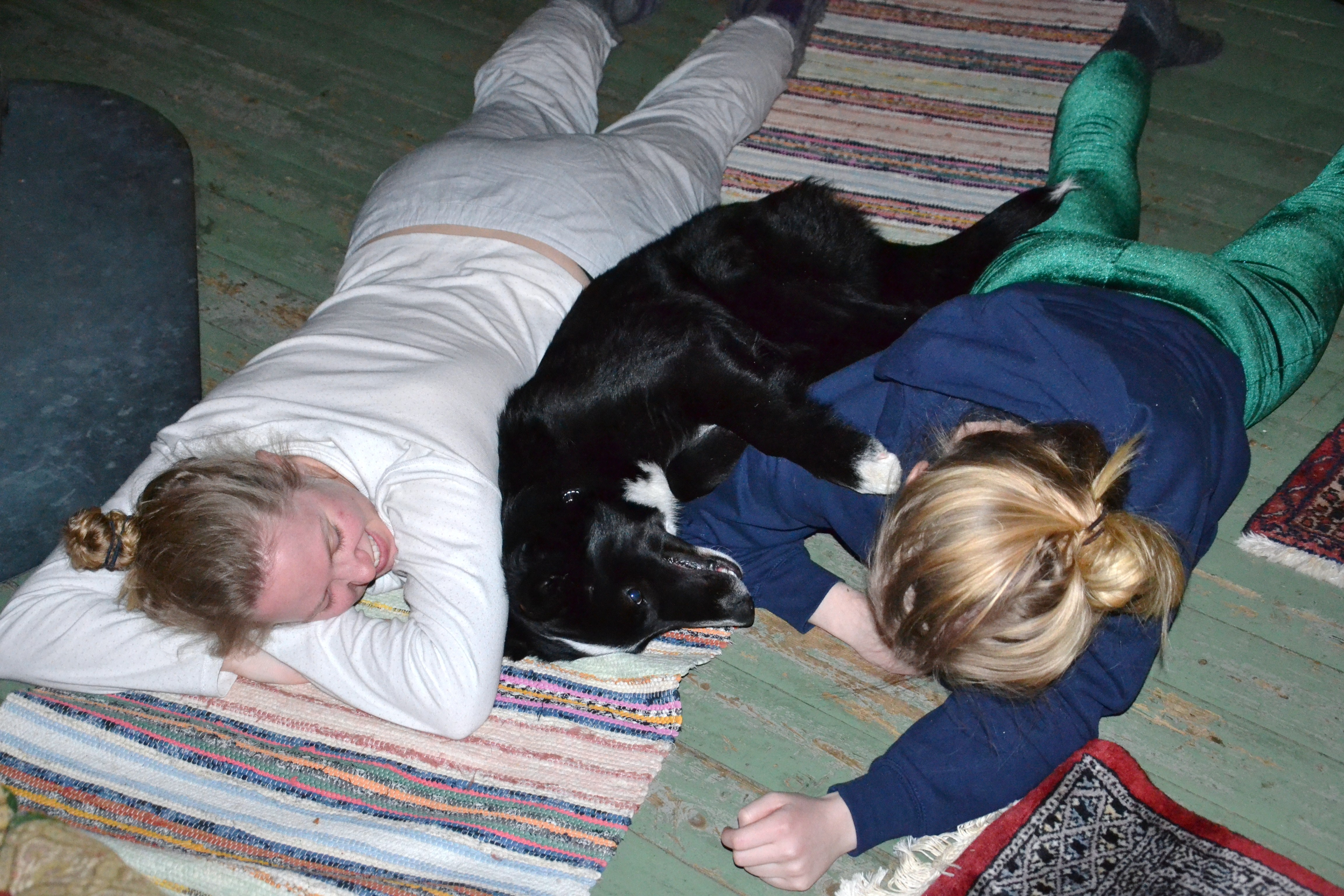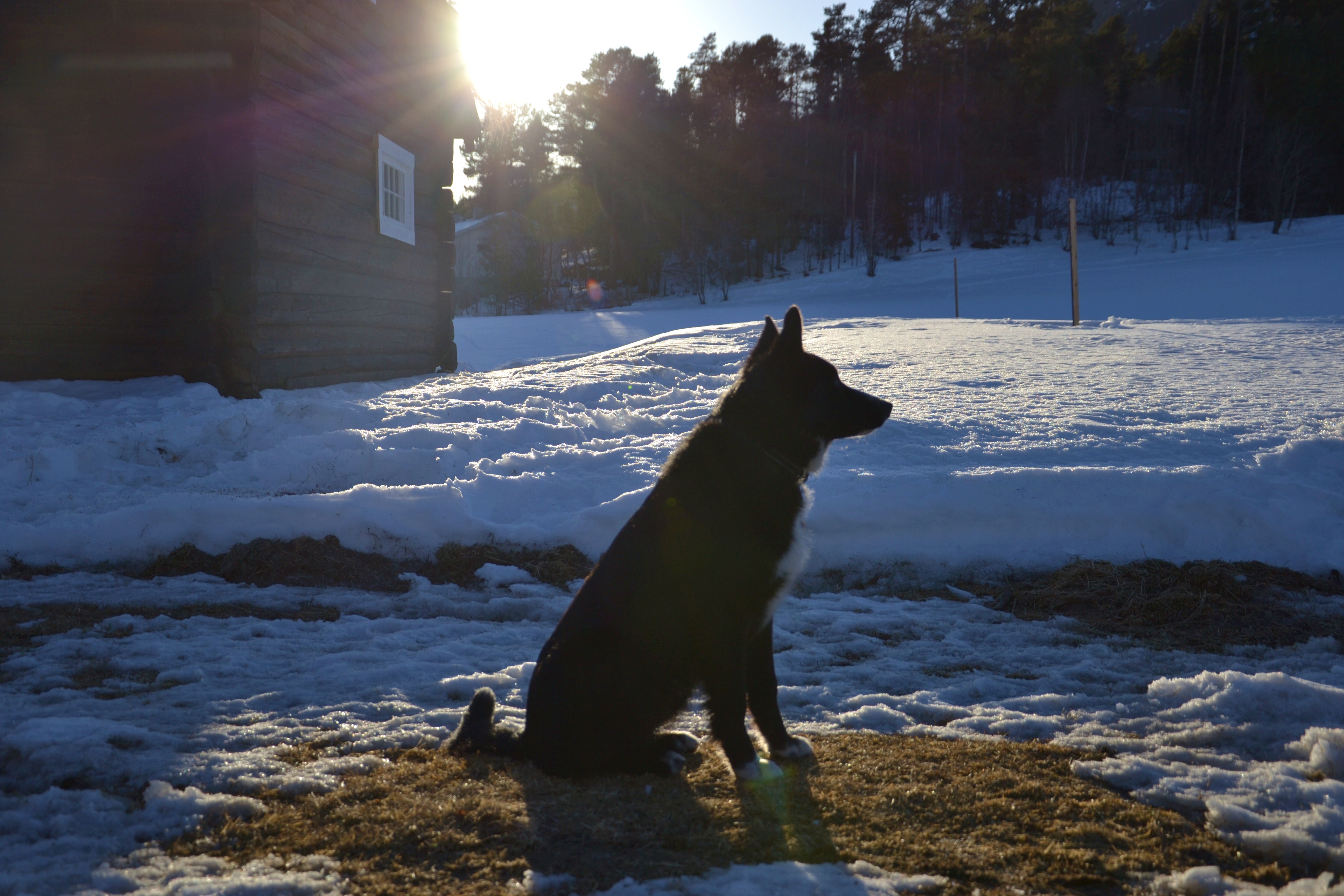 Gandhi, hunden vår, har blitt stor. Han er nå nesten sju måneder gammel, og har utvidet radiusen sin ganske betraktelig den siste tida. Han får som regel springe løs rundt på gården når vi er hjemme. Når det ikke er mennesker hjemme på gården oppholder han seg i fjøset (med mulighet for å gå ut i en liten luftegård), eller i en hundegård med et lite hundehus. Han er veldig kosete og sosial, og er ekstra glad og leken når flere av familiens medlemmer er hjemme.