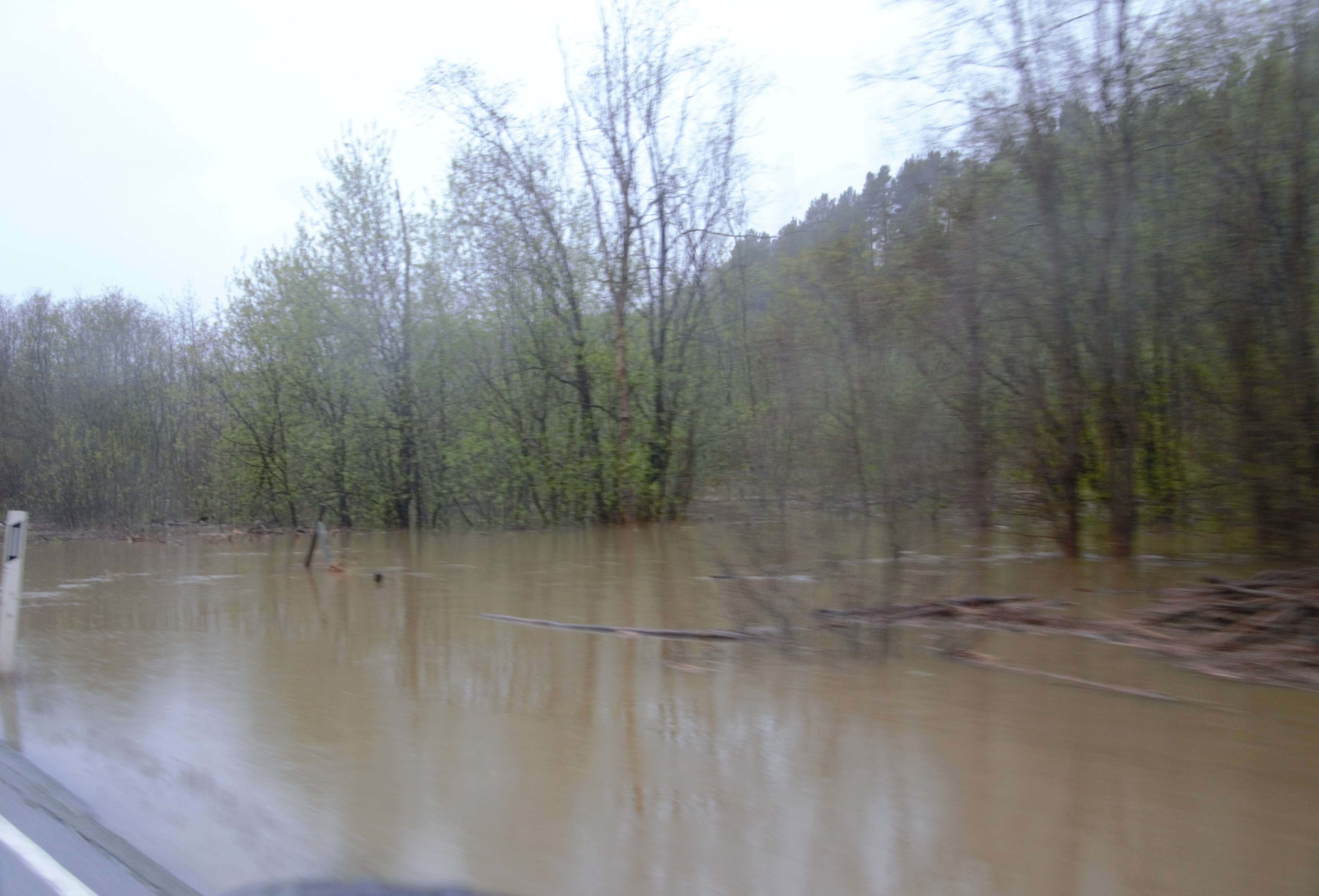 Bare centimetre før vannet renner over riksveien
