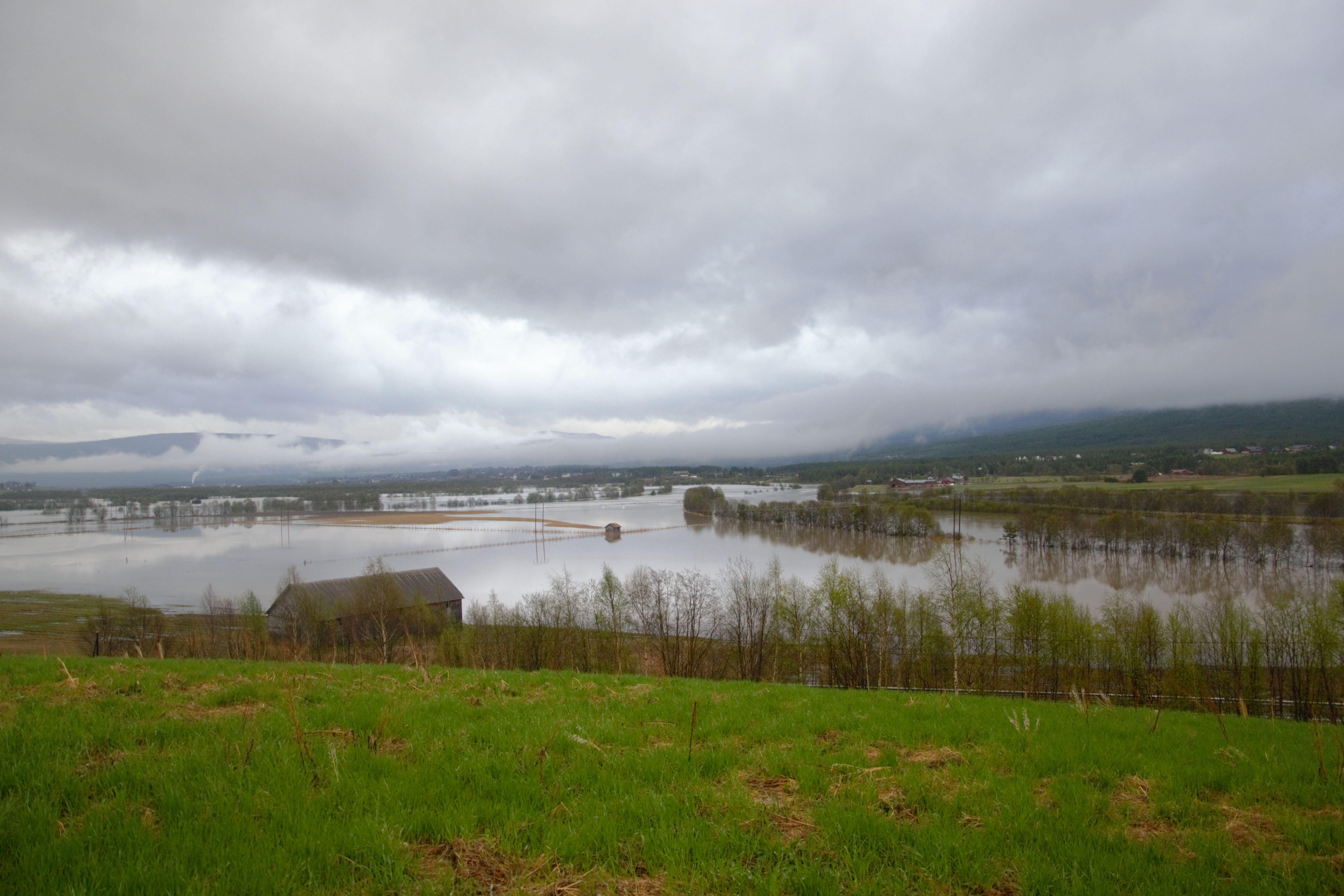Nede i dalbotn er det ikke lenger så lett å se hvor elva egentlig går…