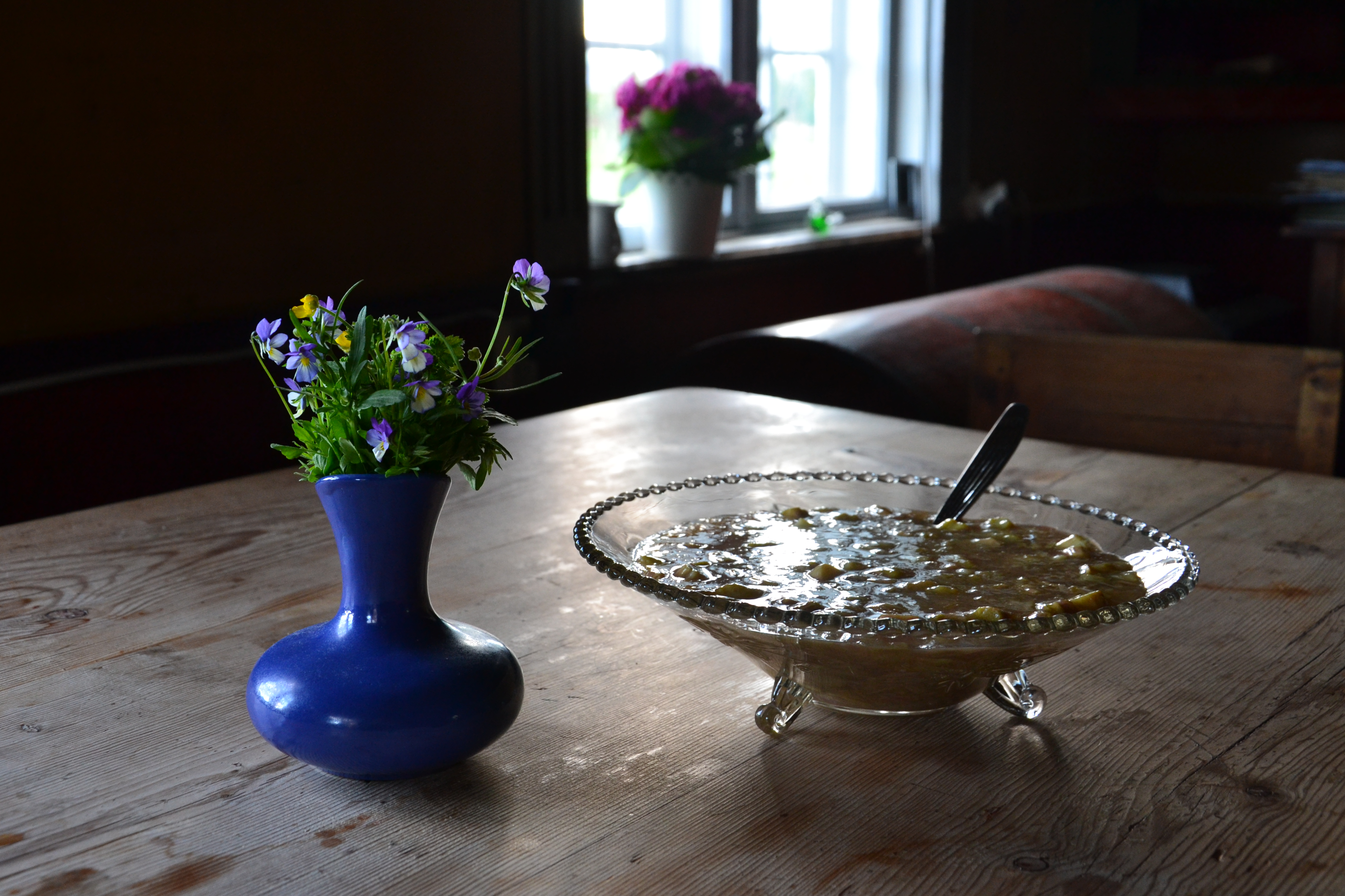 Jeg vil slå et slag for rabarbraen! Utrolig voksevillig (se forrige innlegg!) og av mange nærmest ansett som ugress. Rheum rhabarbarum) er en gammel, hardfør, mat- og medisinplante som opprinnelig kommer fra de nordlige og sentrale deler av Asia. Planten kom til Norge på 1700-tallet. Jeg laget meg rabarbragrøt i dag. Smaken av den bragte meg til minner om barndom og sommer – den gang det alltid var sol og leggene ble brune i juni. Lykken, og det beste godteri, var en liten rabarbrastang og en skål med sukker til å dyppe i. Rabarbra finnes i nesten alle gamle hager – og bak utedoer. Og det er utrolig enkelt å lage noe av den. Denne gangen ble det grøt, neste gang skal jeg lage deilig frisk rabarbrasaft! Noen som vil smake?