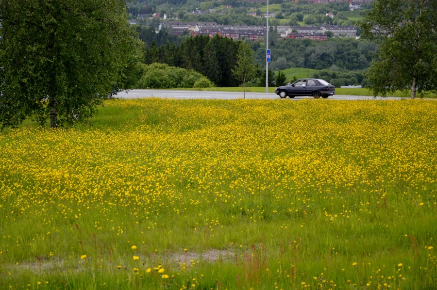 I bilkø gjennom Trondheim kunne vi nyte denne gule blomsterenga