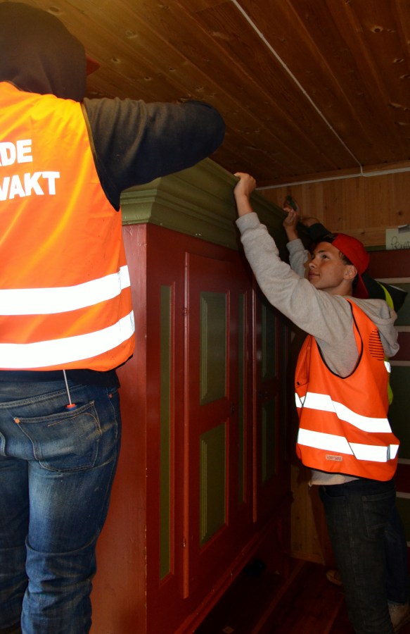 Skapet som vi kjøpte måtte demonteres for å få det ut av huset. Heldigvis fikk vi hjelp av noen flinke gutter