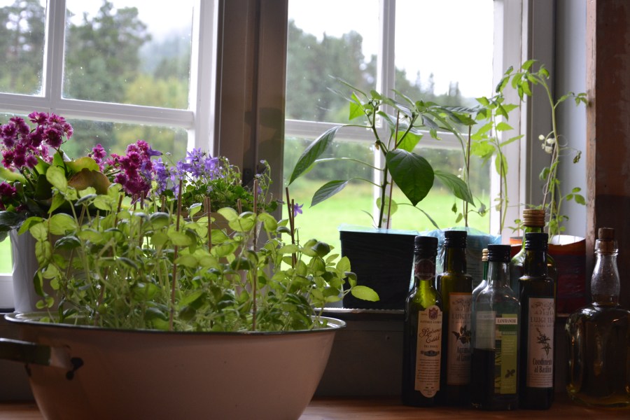 August: Urter i vinduskarmen