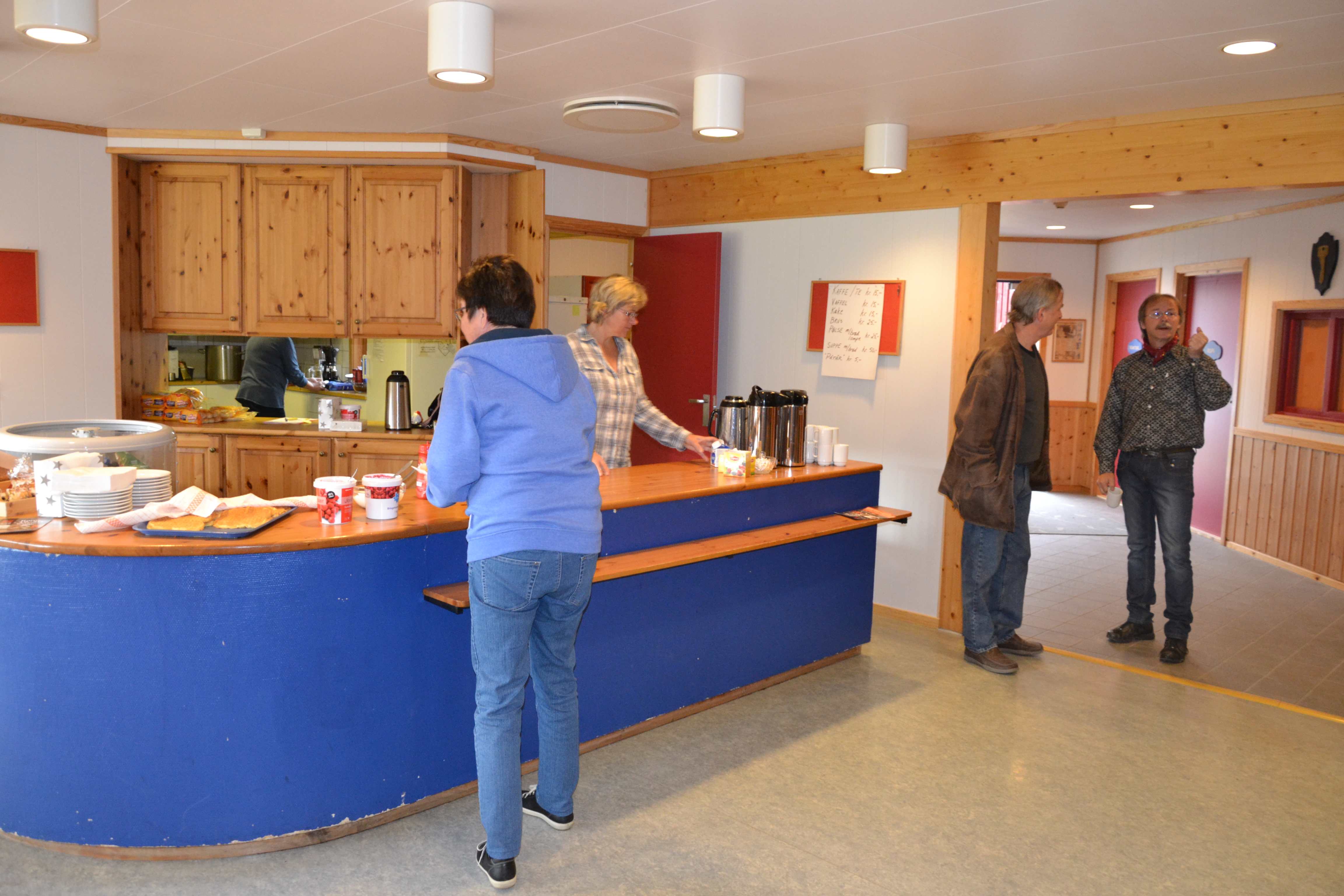 I kaféen selges nydelig suppe, hjemmelagde kaker mm. Auksjonarius er snart klar for innsats, fem strake timer til ende!