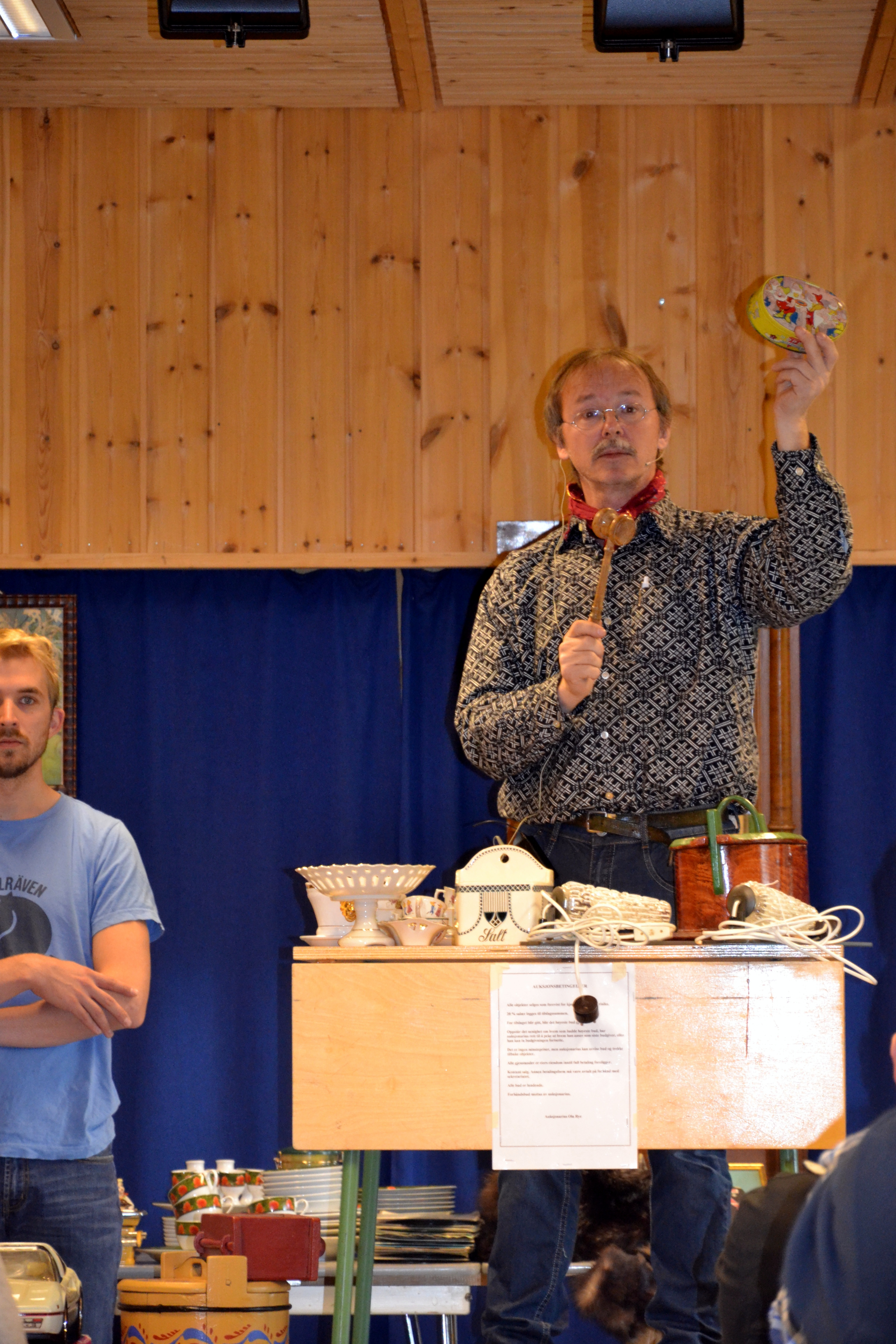 På tross av hektiske dager på gården for å få mest mulig i stand så vi kan flytte inn i våningshuset før vinteren, måtte jeg i helga bare ta meg en tur på sesongens (antakelig) siste auksjon. Jeg har forlengst mistet oversikten over hva vi har og hva vi trenger av ting og tang. Nesten hver gang det har blitt arrangert auksjon i distriktet det siste året, har vi vært på plass og med det resultat at vi har kommet hjem med flere mer eller mindre nyttige ting. Sammen med mesteparten av flyttelasset vi hadde med oss til gården, er noe stuet bort på loftet, noe på låven og inne i våningshuset, mens resten står/ligger/henger rundt meg på alle kanter i den vesle østerdalsstua der jeg bor. Alt altså i påvente av innflytting i våningshuset! Jeg hadde derfor bestemt meg for ikke å gjøre de store innkjøpene i Sætershallen på Tolga, der auksjonarius Ola Rye med hele familiestaben igjen hadde sjauet og rigget til en flott auksjon. Om jeg klarte det? Tja, det kommer nok an på øyet som ser…