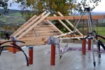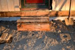 - Foran døra til vaskerommet skal det settes opp et lite tak mot snø og regn. Det er gravet og støpt fundamenter for stolpene til dette