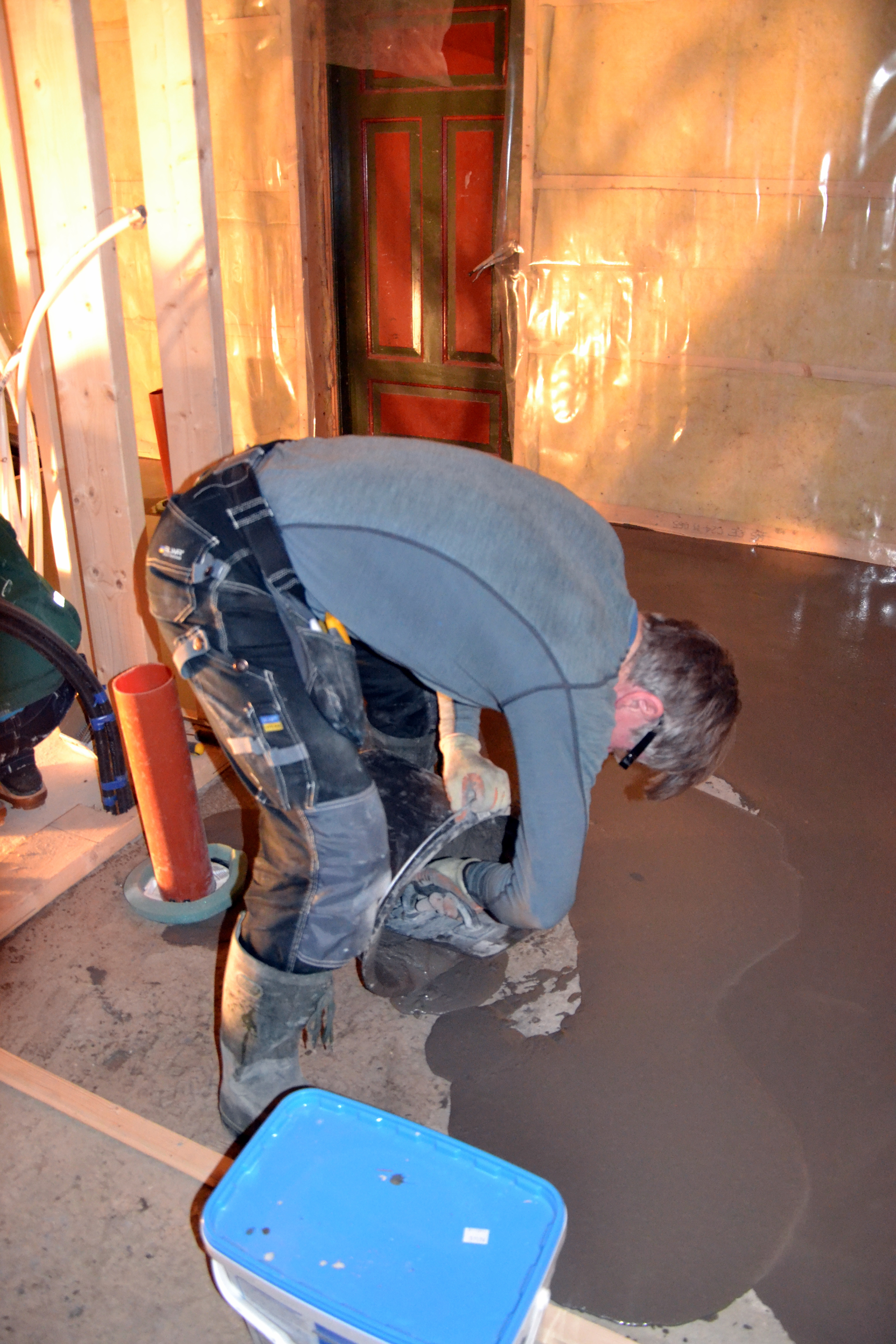 – og så has den utover gulvet, og det gjelder å få rett fall mot slukene