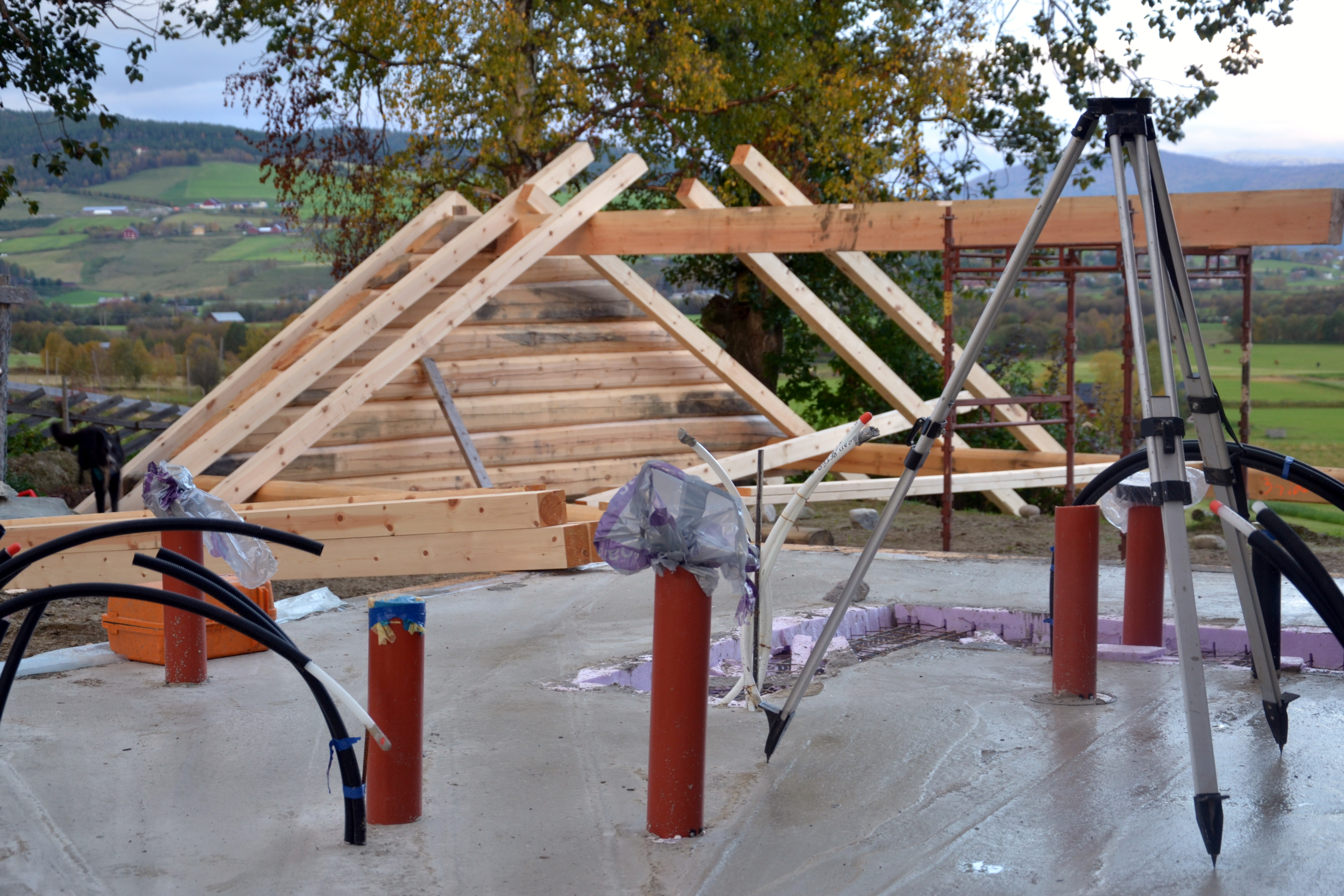 Rør til vann og avløp stikker opp gjennom murgulvet