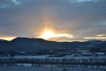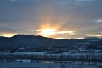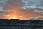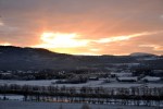 Vakker soloppgang over Tynset i går! Da jeg kom ut på tunet i grålysningen og kikket mot bygda, var det nærmest som om alt var i svart-hvitt. Grålysningen er altså et veldig passende ord. Den bleke himmelen ble langsomt farget pastellrosa og fersken og etter hvert nærmest eksploderte den i en flom av rødoransje. Vi så solstrålene, men selve solskiva ville ikke vise seg. Når den endelig nådde over kanten av åsen, var den nemlig dekket av skyer og det hele var over. Inni hodet mitt hørte jeg Morgenstemning av Grieg mens jeg sto og småfrøs og var vitne til denne nydelige morgenstunden. Her deler jeg noe av det vi så: