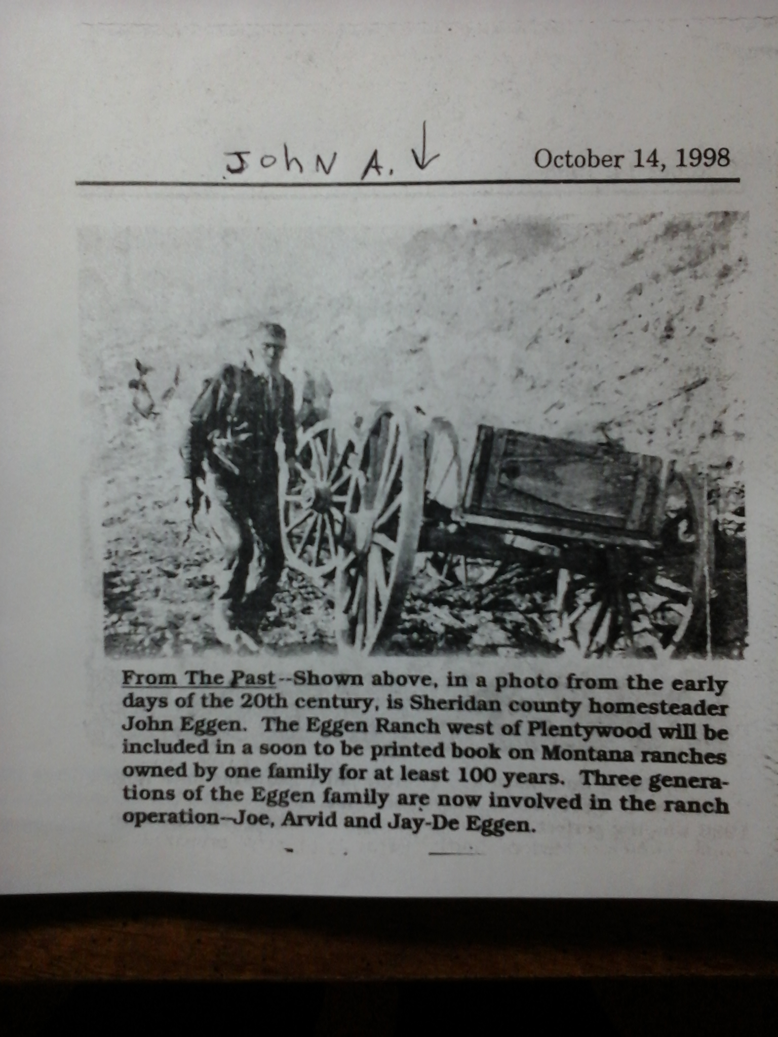 Jon Eggen (tidligere Storeggen) Fra Lillian Frasiers bok «History of the J bar E Ranch & The Eggen’s»