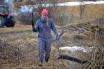 - Busker og kratt langs bekken som deler jordet vårt i to, skal bort. Tungt arbeid, så det tas litt og litt av gangen.
