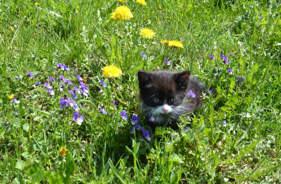 Søteste pusen midt i en herlig blomstereng!