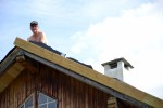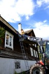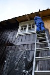 - Jeg kan love at det ikke er særlig morsomt å henge oppunder mønet med tjærekosten, men det må til!