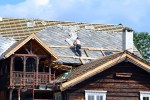 - Først lektes det på taket. Her på storstua ble dette gjort oppå det gamle bølgeblikktaket, mens på resten av huset måtte først den gamle skiferen av, og så lektene på, før ny skifer kunne legges på.