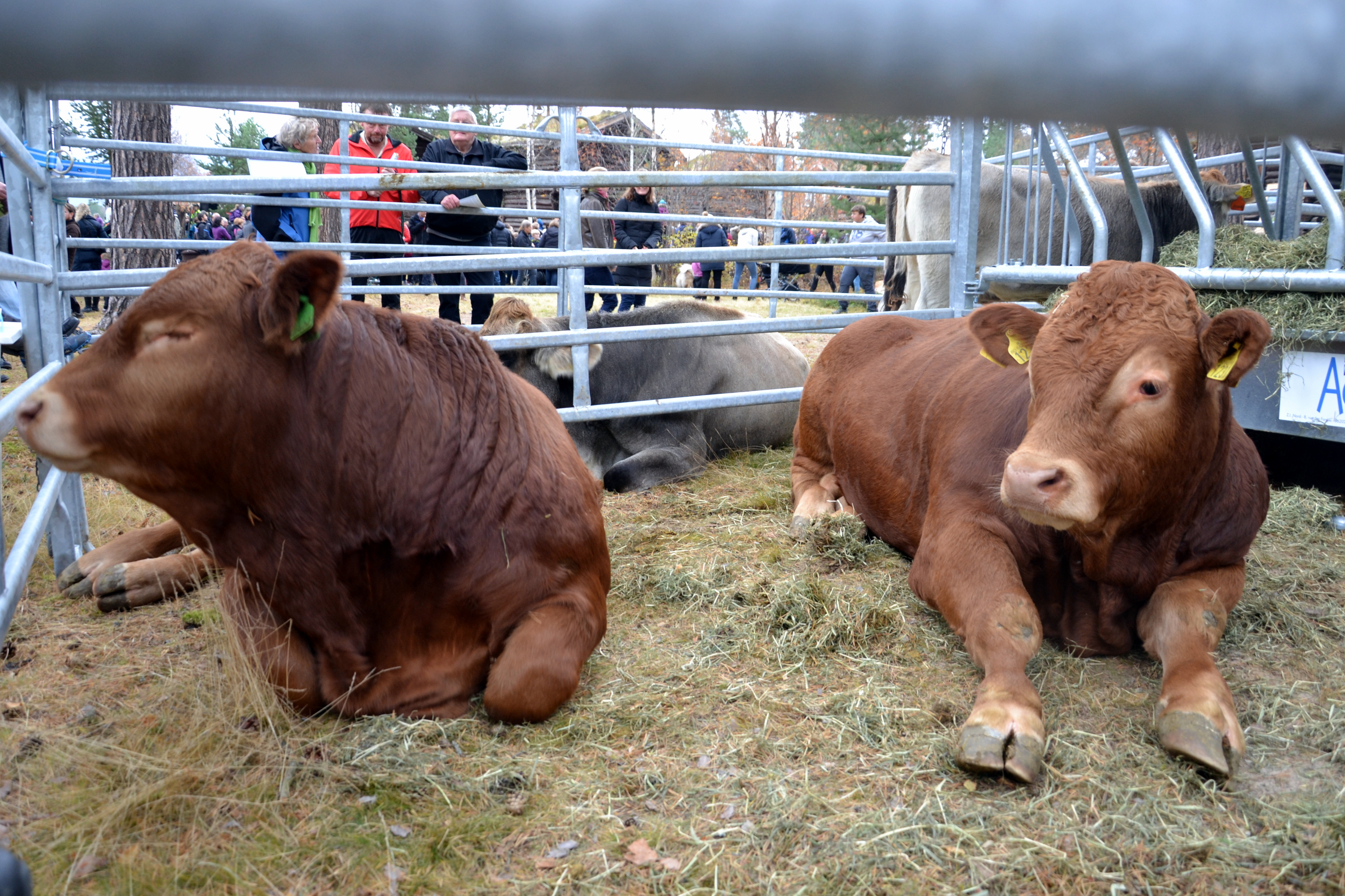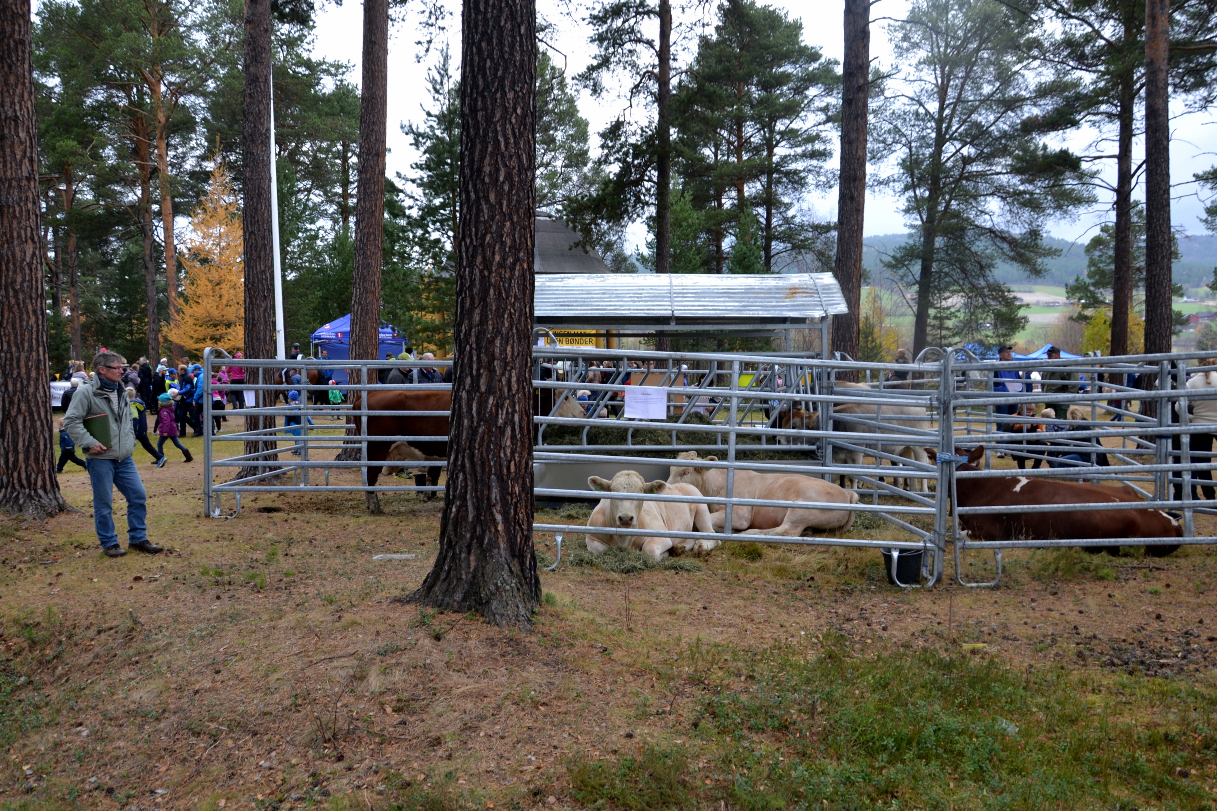 Det var natursti og tilbud om en ridetur for de litt yngre, smak av lokalmat og altså anledning til å beundre ulike dyrearter og -raser. Selv var vi denne gangen mest interessert i de to oksekalvene av «vår» sort, limousin, som lå og slappet av i bingen, mens de ble beskuet. Vi koste oss med å slå av en prat med både kjente og litt mer ukjente. Det er slik at vi nå merker at vi ar bodd i bygda en stund, for det er stadig flere kjentfolk å treffe på når vi ute på ulike arrangementer, noe som oppleves svært så trivelig.