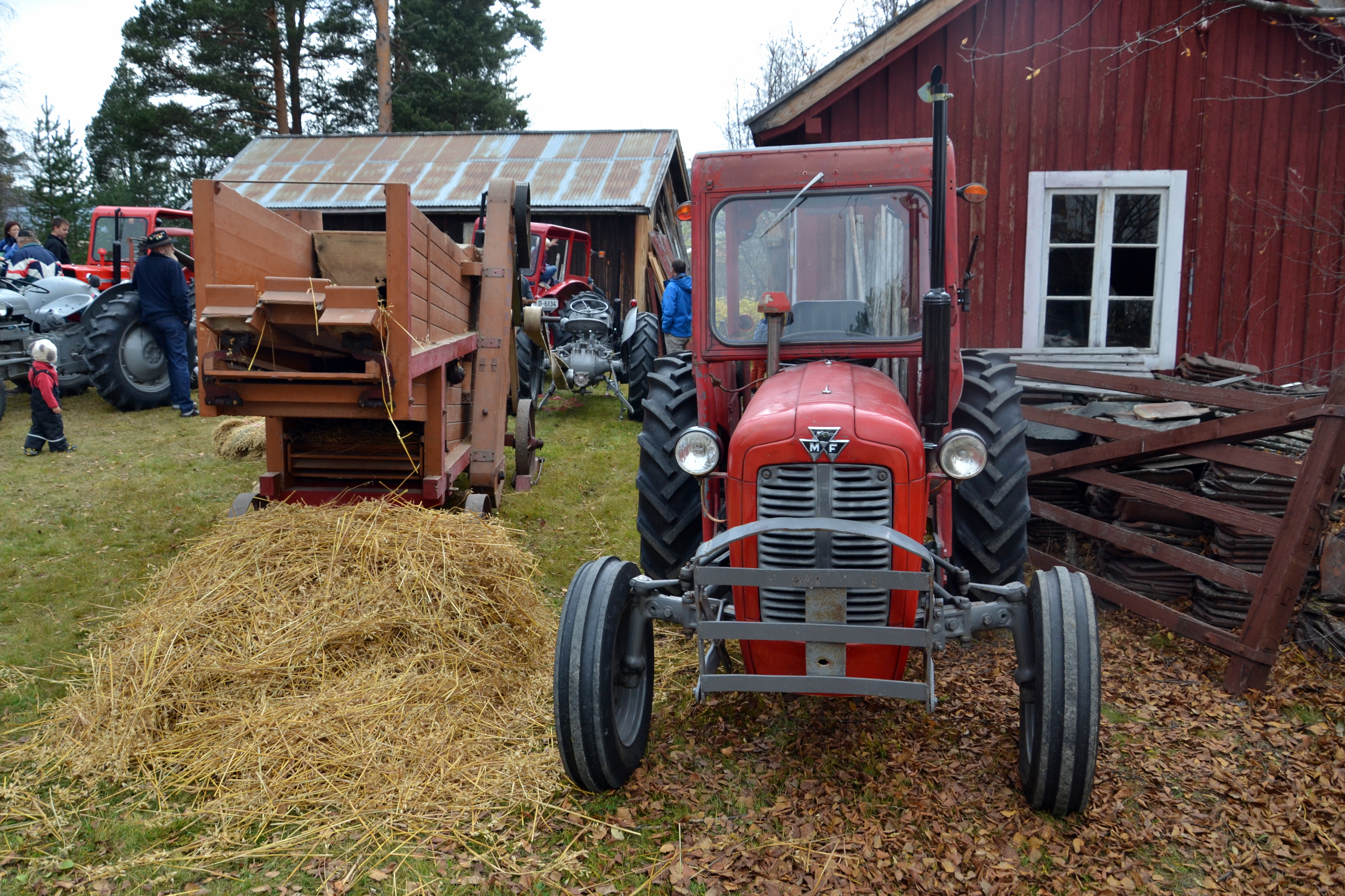 På vei til arrangementet, passerte det oss en hel kortesje med gamle traktorer. Her er en av dem plassert til skue sammen med treskeverk og flere andre historiske kjøretøyer