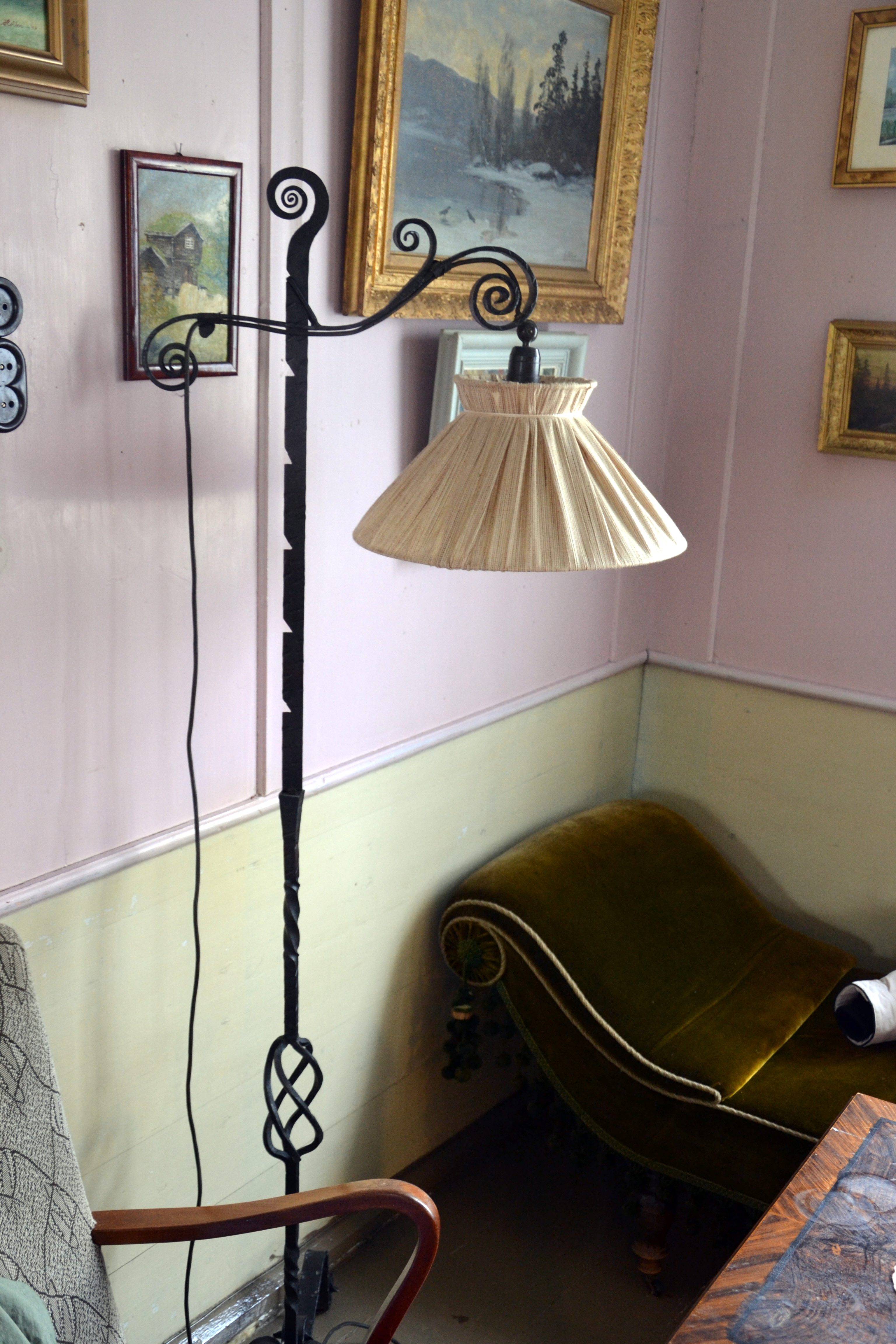 Den gamle stålampa under sjeselongen gir oss lyst til å slenge oss nedpå med en god bok!