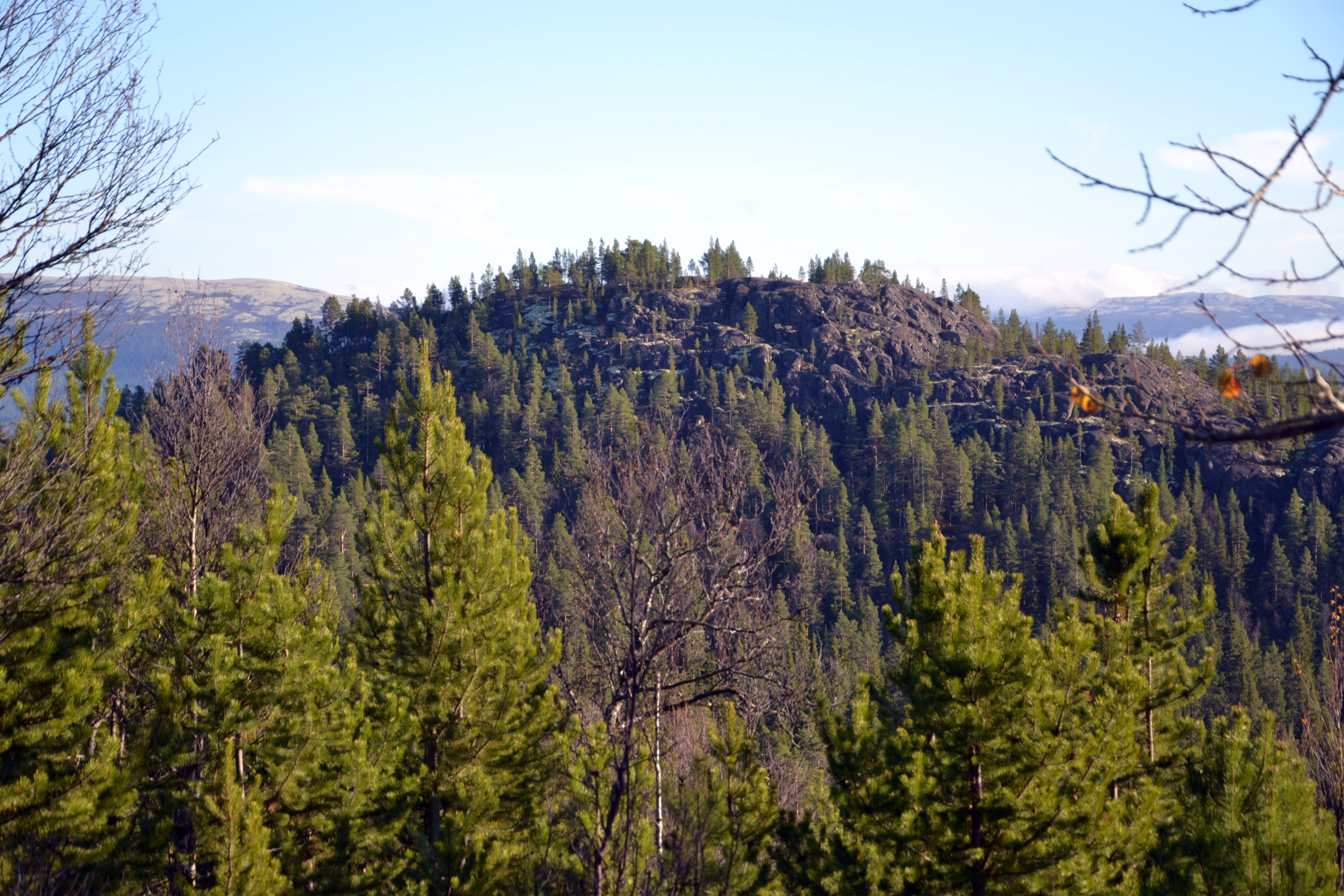 Mellom trærne får vi stadig øye på fjellene fra litt andre retninger enn vi er vant til. Her er Tron!