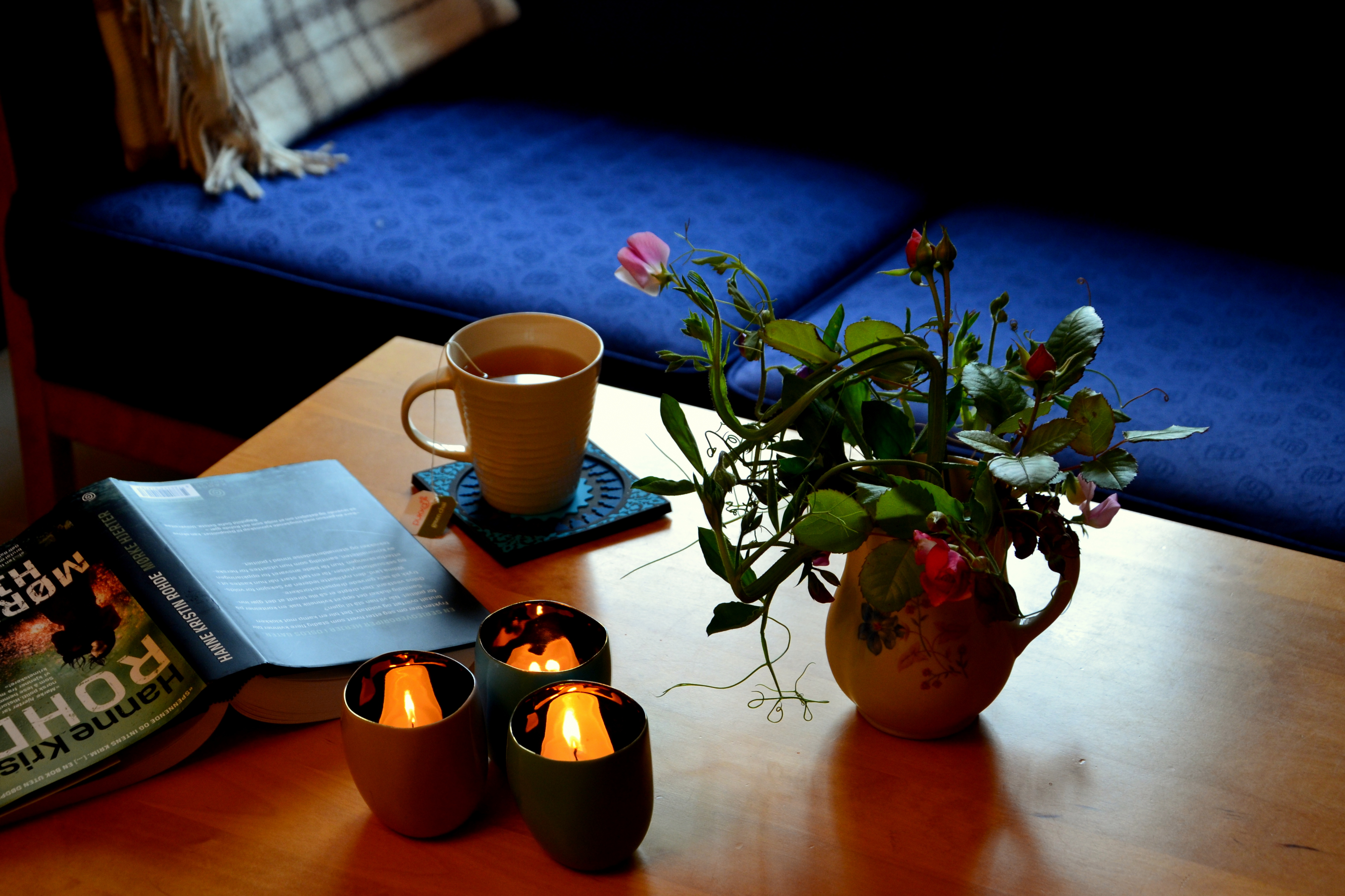 I dag er været ikke like fristende for fjellturer, skjønt, jeg kjenner jo munnhellet om at det ikke finnes dårlig vær, bare dårlige klær. Men siden jeg var ute flere timer i går, er det deilig å kose seg innendørs i dag. Som nordmann har jeg det vel i meg, at nytelse kommer etter ytelse, så da skal jeg i dag riktig nyte levende lys i halvmørket, en kopp varm krydderte og en bok. Alternativt tips: – lese blogg. Så får andre drive med sitt, slik som elgjegerne gjør – regn og surt vært stopper ikke dem.