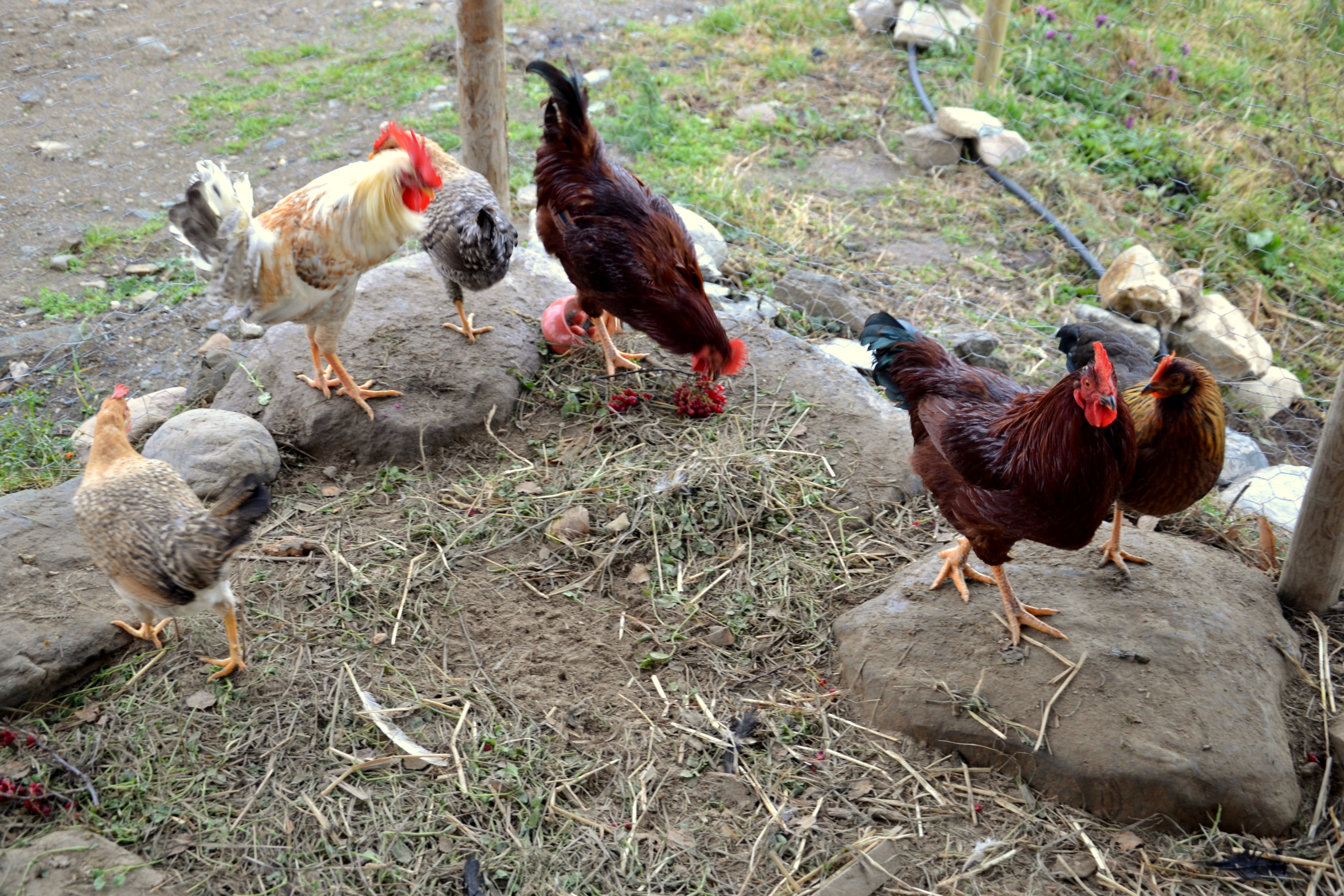 Da har vi fått våre første egg fra egne høns! Det første ble funnet i går, og i dag lå det jammen enda ett i en av rugekassene! Nå venter vi spent på fortsettelsen – om det blir overflod av eggemat her i huset. Foreløpig er det ingen fare i så måte, de to eggene er ganske små. Hønseflokken virker ellers ganske harmoniske om dagen, og ser ut til å innfinne seg med hverandre. De lar seg heller ikke affisere av de to dyra utenfor hønsenettingen, som av og til er veldig interesserte i det som foregår på innsiden. Hønene klukker og det gales sent og tidlig, både av Galematias og av Helios.