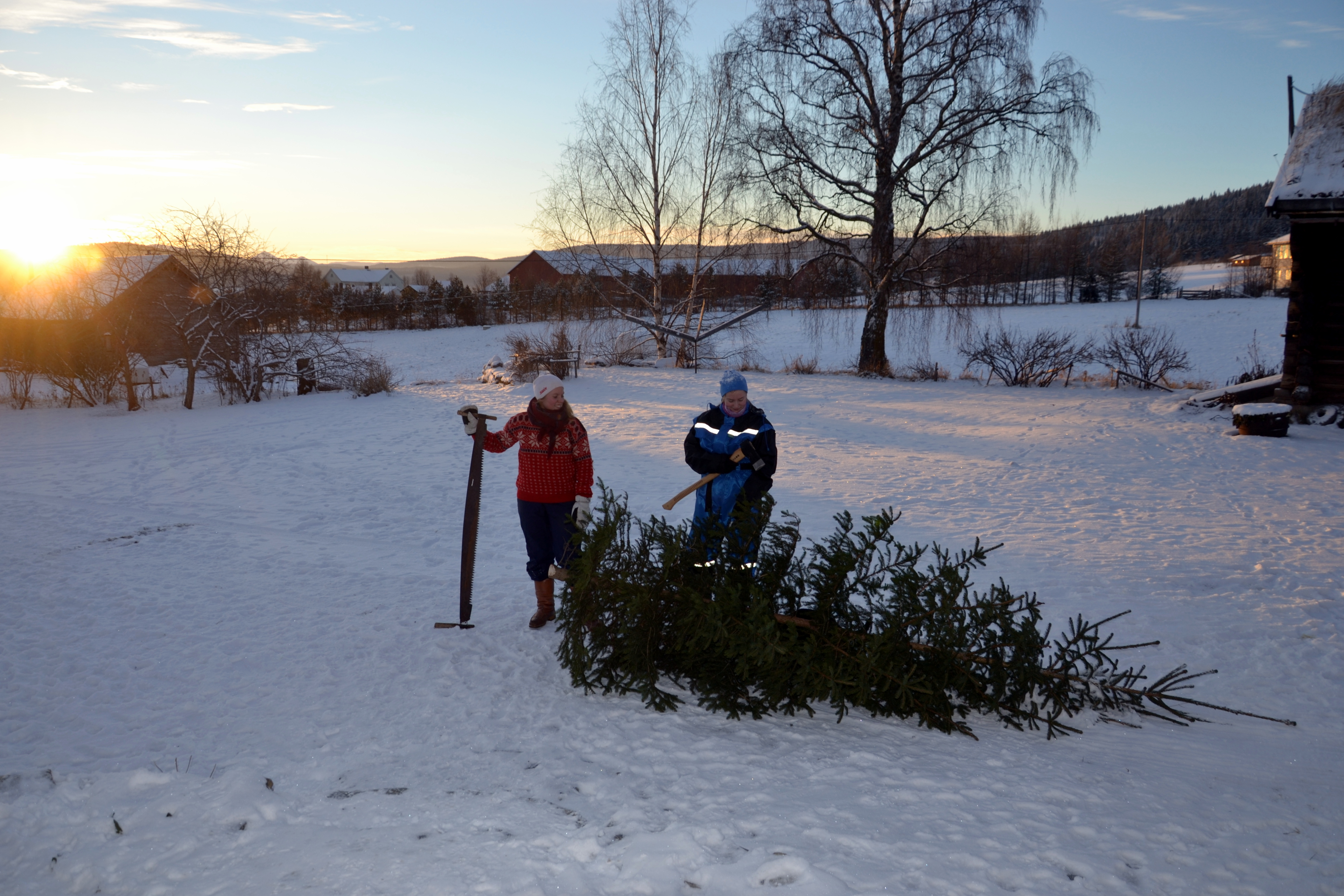 Stolte juletrehuggere på tunet