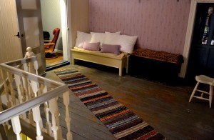 Hvis noen trodde huset vårt var ferdig, kan jeg opplyse om at det er det altså ikke. På langt nær. Men det blir gjort litt hele tiden, og nå begynner vi å se enden på et par rom til; rommet der den gamle trappen kommer opp, trappestua, og Klettstua (ja, det er veldig mange stuer i et slikt gammelt våningshus!). I dag ser du bilder fra trappestua. Det gjenstår fortsatt mye «pirk», for eksempel de siste strøkene på lister, og så er det elektrikerarbeid, men det må vente til alle rom er klare.