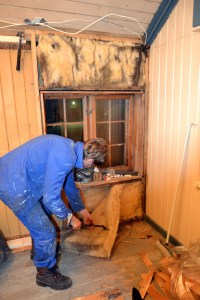 - Det gamle panelet fjernes, og over og under vinduet dukker det opp en god del skit.