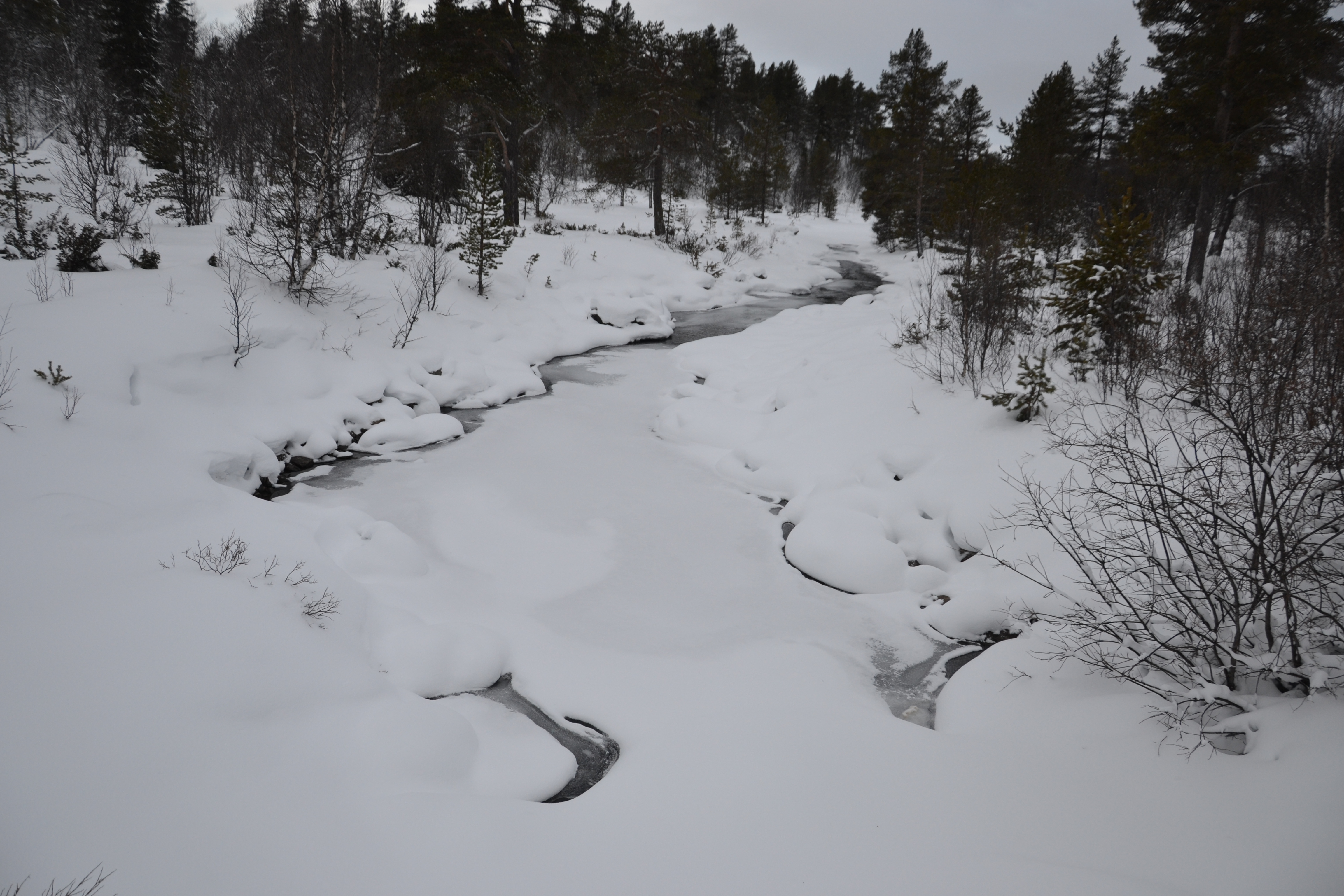 Bekken klukker seg fortsatt frem under snøen