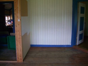 - Det var satt opp en liten gang (veggen til venstre) som en del av stua, den måtte rives