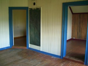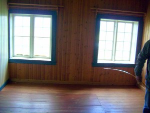 - Rommet har fortsatt den opprinnelige skiferplaten som i sin tid har vært brannvegg bak rommets ovn.