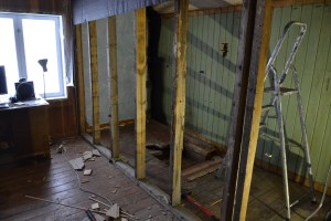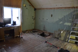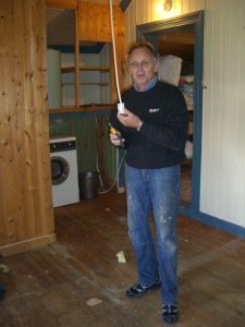 - Trond hjalp oss med å ordne det gamle elektriske slik at det ikke skulle være farlig før nytt anlegg er på plass. På gulvet ses konturene etter lettveggene til den lille gangen