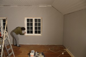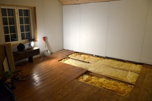 - Rommets to yttervegger måtte isoleres. Slik så det ut før vi satte i gang.