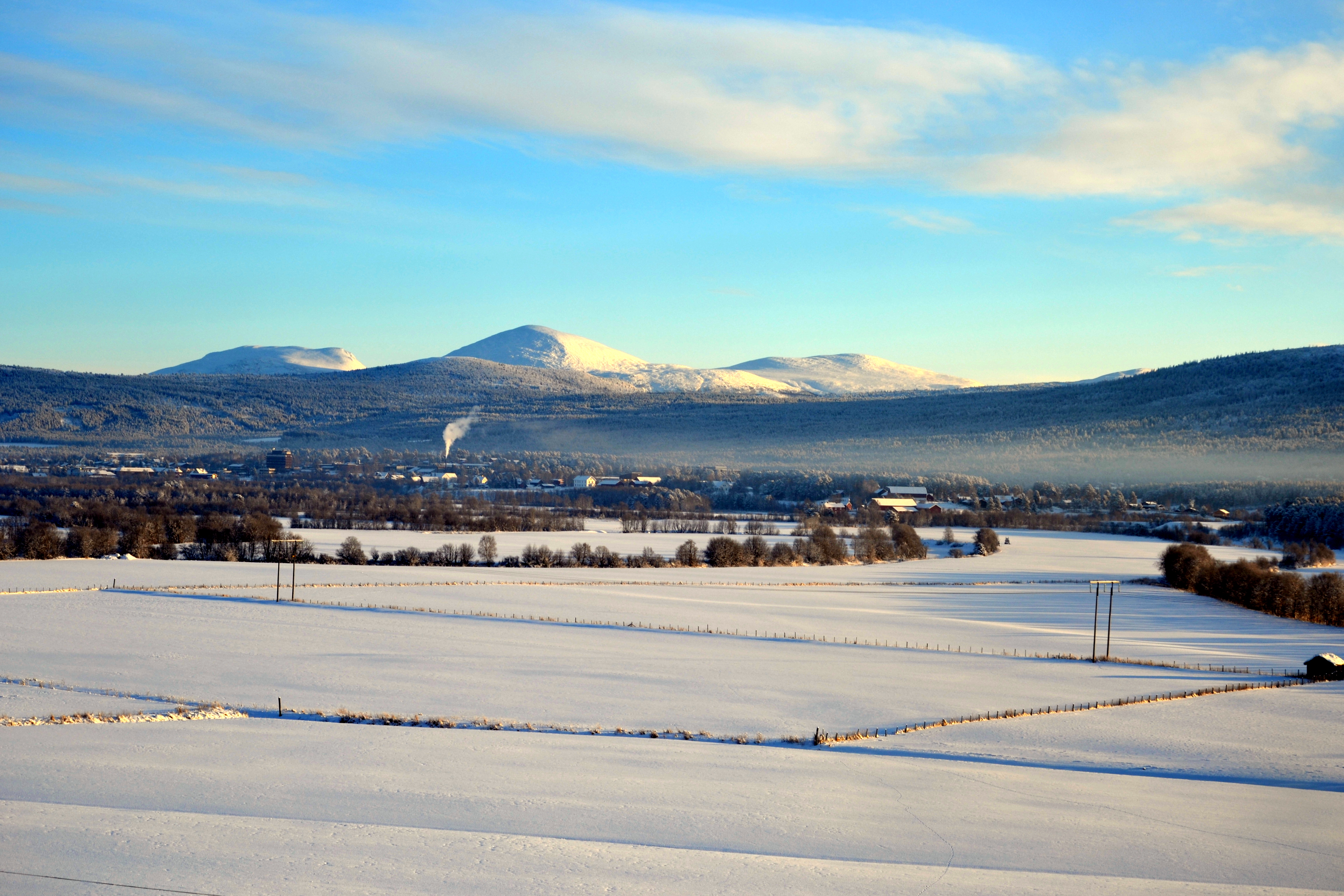 Lyst til å ta en kikk inn til oss igjen? Nå kan du få se hvordan det har blitt på Klettstua, som jeg antydet for et par innlegg siden, da jeg viste trappestua. Neida, alt er ikke ferdig her heller, men såpass ferdig at rommet nå kan brukes og føles trivelig å oppholde seg i. Dette er det tredje, og siste, rommet som har fått tapet på to vegger, ytterveggene. Også denne fra kolleksjonen De historiske tapeter fra Norsk Arv. «Svinør (Louis-seize/Empirestil). Tapetet er opprinnelig engelsk og kom til Norge i 1780-årene. Det var populært til ca. 1820.» Dette rommet har gjennomgått er ganske stor forandring fra da vi startet, det er nesten så vi ikke klarer forestille oss hvordan det har vært. Men så har vi bildene som hjelper oss å huske. Men først utsikten som har gitt stua navn, de tre Klettfjella; Blåkletten, Storkletten og Langkletten troner i øst, over Tynsetbyen, Glomma og de flate jordene foran: