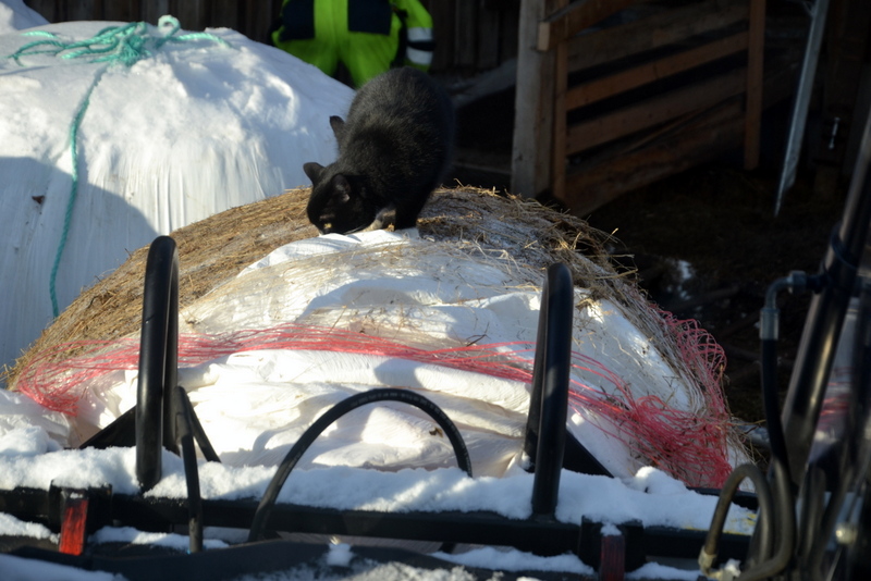 Gudleik elsker å klatre på rundballer, også når de flyttes på med trakoren