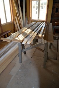 - Etter at alle delene var skåret til, med utskjæringer og rette dimensjoner, samt prøveoppsatt, justert og tatt ned igjen, ligger de klare for å males