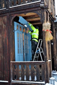 - -og nå, ferdig! (Kransen er forresten foreløpig tatt inn på grunn av det varslede uværet, Ole)