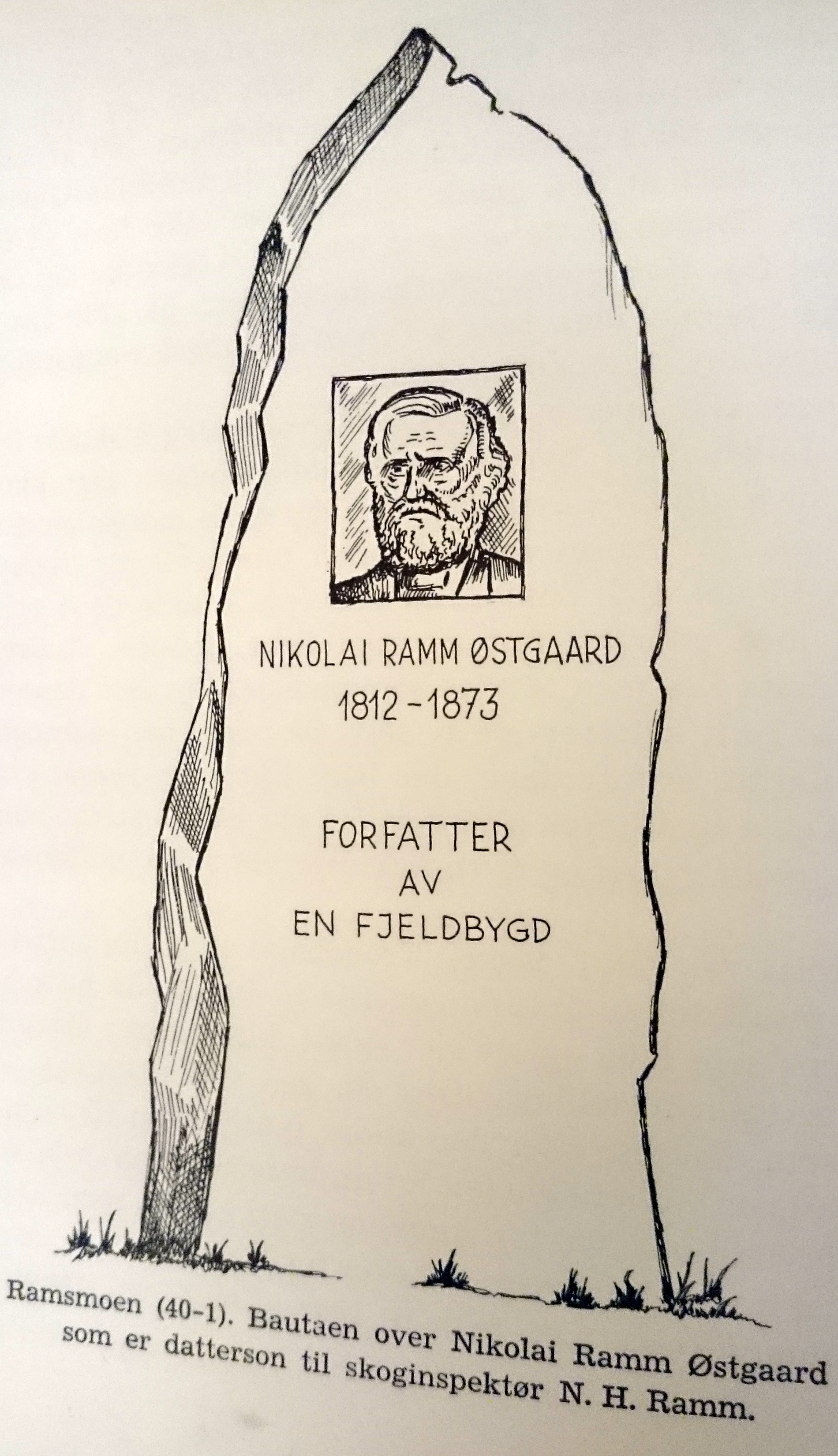Nicolai Ramm Østgaard ble utdannet jurist. Fra 1859 til 1872 var han fogd i Søndre Østerdalen. Han døde i Elverum i 1873. Bestefarens gård, Lassmoen, som etter hvert ble til Ramsmoen, og Tjønnmoen (Bjørnsmoen), lå der dagens sentrum befinner seg. Dette var før jernbanens inntreden, og dermed var datidas sentrum på Neby, nedenfor kirka. I nærheten av der gården lå, finner vi i dag en gate oppkalt etter Nicolai Ramm Østgaard, ja, det finnes til og med en minnebauta over ham. Det er lett å forstå at bygdefolket er og har vært stolte av sin sambygding.