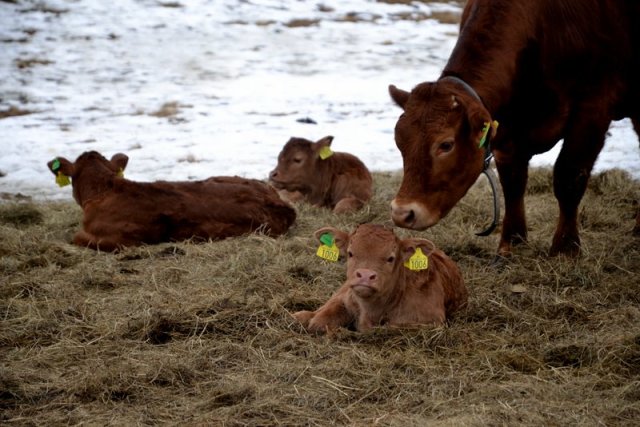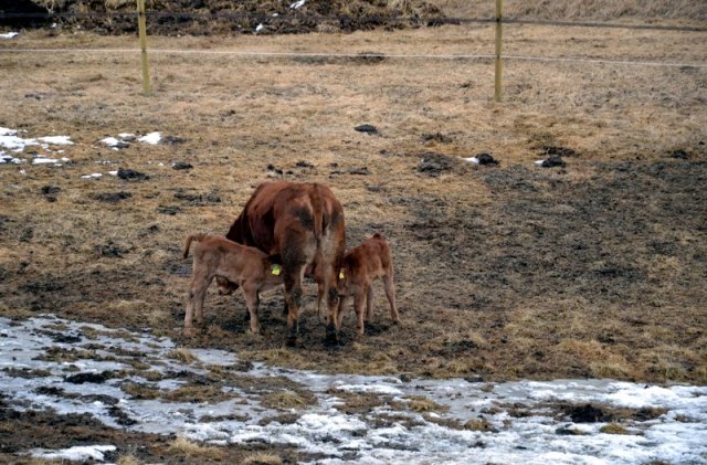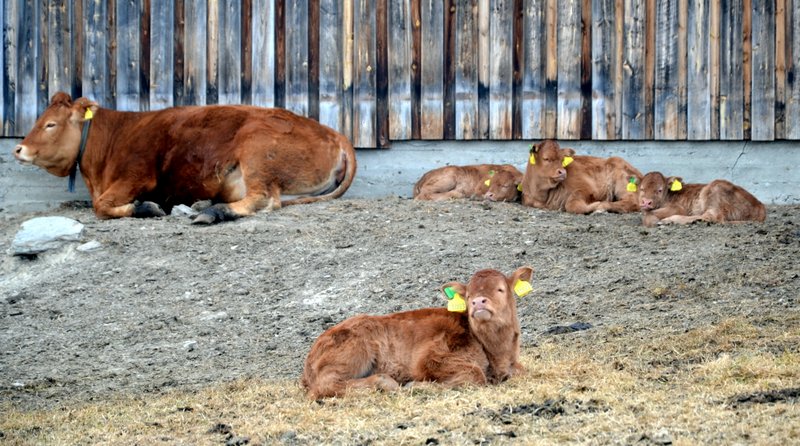Noen ganger går kalvene til feil mamma, og forsøker å lure til seg en sup. Enkelte kuer tolererer det greit, og har to kalver pattende på en gang, mens andre er snare til å dytte bort den lille inntrengeren. De eldste kalvene har allerede begynt å supplere kosten med å ete grovfôr, de tar etter mora. Babytida varer ikke lenge! Av de ni har vi fem kvigekalver og fire oksekalver. Nå venter vi spent på sistekalv ut, og håper den fødselen skal gå like greit og uproblematisk som de ni andre. Blir det fifty-fifty kvige-okse, eller får vi en overvekt av kviger, tro?