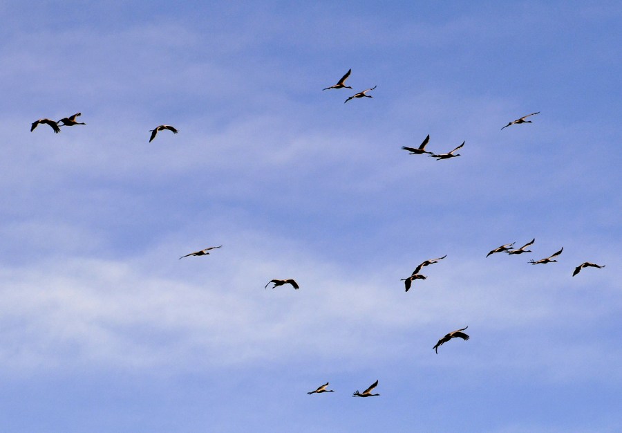 Er det ikke traner som har kommet?Wikipedia: «I gresk og romersk mytologi ble tranens dans ofte brukt til å symbolisere glede, og feiring av livet, og tranen ble ofte ansett som Apollons fugl. I store deler av Asia symboliserer tranen glede og evig ungdom (i følge en fabel skulle tranen leve i tusen år). I kinesisk og japansk mytologi symboliserer tranen også visdom, og fuglen blir kalt «gledens fugl» i Japan, og «den himmelske tranen» i Kina.»